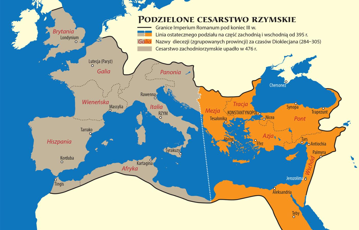 Wschodnie cesarstwo rzymskie. Naturalnie Bizancjum to nie tylko Kościół – to bowiem nic innego jak tylko późnoantyczne wschodnie cesarstwo rzymskie, które nie przestało istnieć u zarania średniowiecza, ale przetrwało całą tę erę aż do 1453 r., zmieniając się ustawicznie i akomodując do rzeczywistości. Problem z określeniem jego początku wypływa właśnie z tego, że wykształciło się ewolucyjnie, nigdy nie zostało proklamowane, a zmiany społeczne, gospodarcze i administracyjne zachodziły stopniowo.
