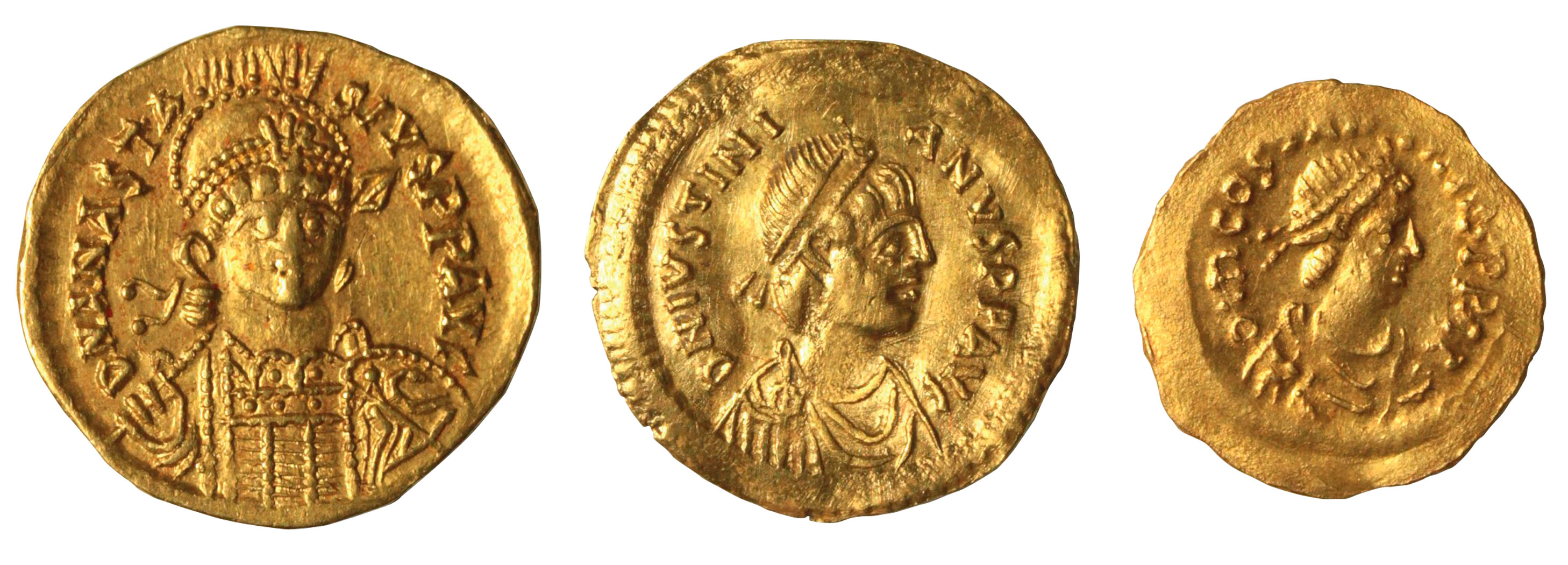 Solidny złoty. Szukając cezury oddzielającej starożytne Imperium Romanum od Bizancjum, numizmatycy mają zdecydowanie mniej problemów niż inni badacze; zgodnie za przełomowe dla mennictwa uważają panowanie Anastazjusza I (491–518). Cesarz ten ok. 498 r. przeprowadził gruntowną reformę nominałów brązowych, która dała mocne podwaliny mennictwa bizantyńskiego. Kluczowy dla tego systemu monetarnego złoty nominał – solid (łac. solidus), o wadze ok. 1/72 funta, tj. ok. 4,5 g (odpowiednik 24 karatów, będących dla Bizantyńczyków jednostką wagi) – został wprowadzony znacznie wcześniej, bo już w 309 r. w kontrolowanej przez Konstantyna I (306–337) mennicy w Trewirze. Początkowo był on jedynie lżejszym standardem rzymskiego „złotego” (łac. aureus), jednak szybko go zastąpił i aż po X w. zachowywał nie tylko stałą wagę na poziomie 4,4–4,5 g, lecz również bardzo wysoką próbę kruszcu. Jeśli dodamy do tego olbrzymią produkcję stołecznej mennicy w Konstantynopolu i nieco mniejszą mennic prowincjonalnych oraz niemałe rezerwy państwa (Anastazjusz przekazał swemu następcy skarbiec wypełniony 320 tys. funtów złota, czyli równowartością ponad 24 mln solidów), nie dziwią słowa greckiego podróżnika Kosmasa Indikopleustesa, który dotarłszy m.in. do Aksum w Etiopii, do Indii i na Cejlon, w połowie VI w. pisał o solidzie bizantyńskim jako monecie akceptowanej i pożądanej przez wszystkich na całym świecie. Nieprzypadkowa jest zresztą sama nazwa nominału: łac. solidus oznacza mocny, trwały, stąd polski solidny.
