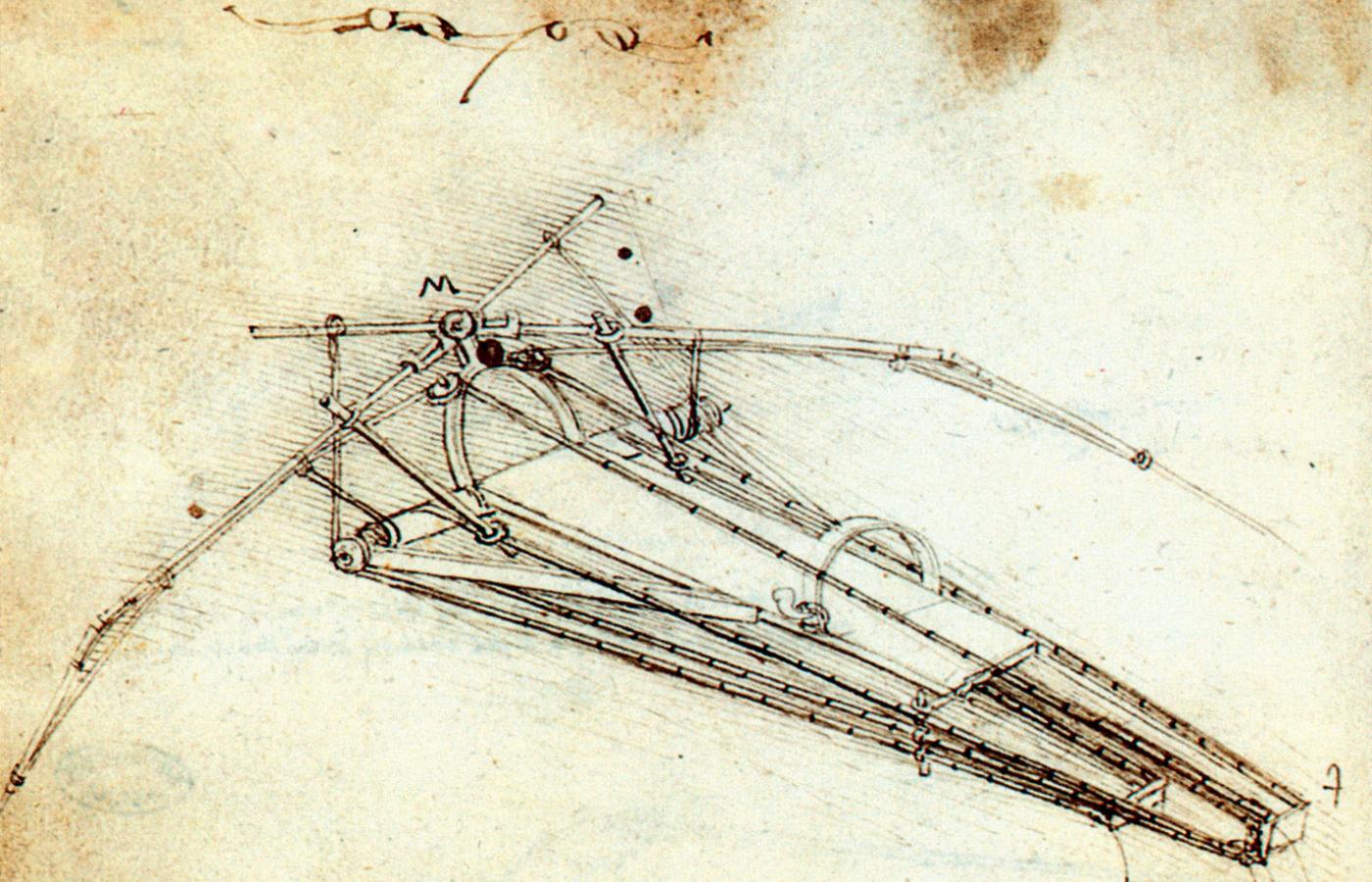 Inżynierskie kodeksy. Najwięcej szkiców konstrukcji maszyn Leonarda da Vinci zostało zebranych w tzw. Kodeksie Atlantyckim, zestawionym pod koniec XVI w. przez rzeźbiarza i bibliofila Pompea Leoniego. Obecna wersja po renowacji zawiera 1750 rysunków. Notatki i szkice mistrza znajdują się także w innych zbiorach. Najbardziej dojrzały, jeśli chodzi o omówienie kwestii technicznych, jest Kodeks Madrycki II, który zawiera najwięcej skończonych obiektów. Wiele pozostałych to zaledwie szkice, które trzeba uzupełniać i dopowiadać, a nie gotowe rysunki techniczne. W dziedzinie inżynierii Leonardo rozwijał myśli poprzedników i czasem od nich wychodził, niektóre jego szkice są kopiami rysunków Mariano di Jacopo, nazywanego sieneńskim Archimedesem. Korzystał z prac architektów i inżynierów, m.in. Filippo Brunelleschiego i Francesco di Giorgio Martiniego.
