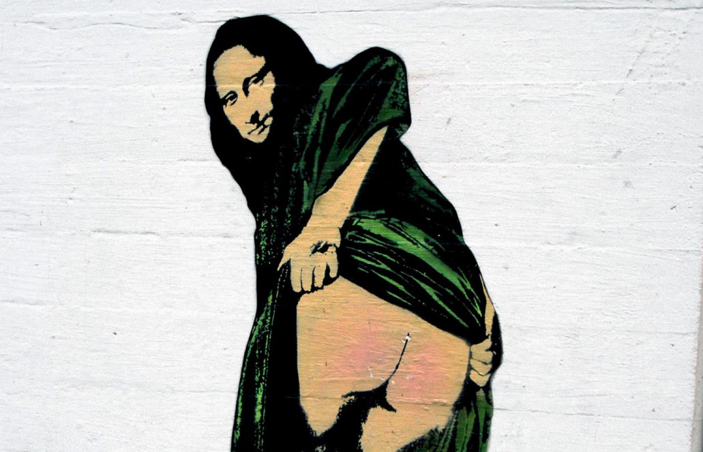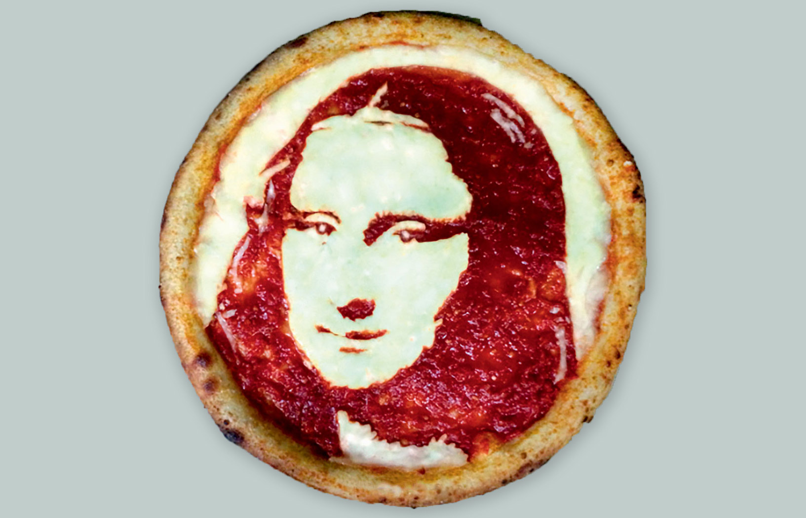 Półfabrykat do produkcji wszystkiego. „Czy widziałeś już Giocondę?” – na zdjęciu sprzed ponad 100 lat wąsaty naganiacz wabi publikę nie pod podejrzanym lokalem na placu Pigalle, lecz pod dostojnym paryskim muzeum Luwru. Od tamtego czasu dzieło widziały miliony ludzi, co sprawiło, że stało się „jedynym przez wszystkich rozpoznawanym obrazem na świecie”. Jedni widzieli je w Luwrze, usiłując dostrzec cokolwiek pomiędzy głowami tłoczącej się przed obrazem ciżby. Inni znają z tysięcy reprodukcji. Ale nie tylko. Od stulecia ten sławny wizerunek, niechroniony żadnymi prawami, stał się pustym ekranem, na który rzutować można dowolne wyobrażenia i treści. Pokonując granice kultur, powszechnie znana twarz zaprasza do pizzerii, biur podróży, linii lotniczych, sklepów ze sztuką, spożywczych delikatesów, centrów handlowych, stacji benzynowych, targów włoskiego jedzenia. „Gioconda” z powodzeniem służy karykaturze politycznej, przybierając rysy prezydenta Waszyngtona, cesarza Wilhelma, Stalina, Mao Zedonga, Osamy bin Ladena czy premiera Berlusconiego.