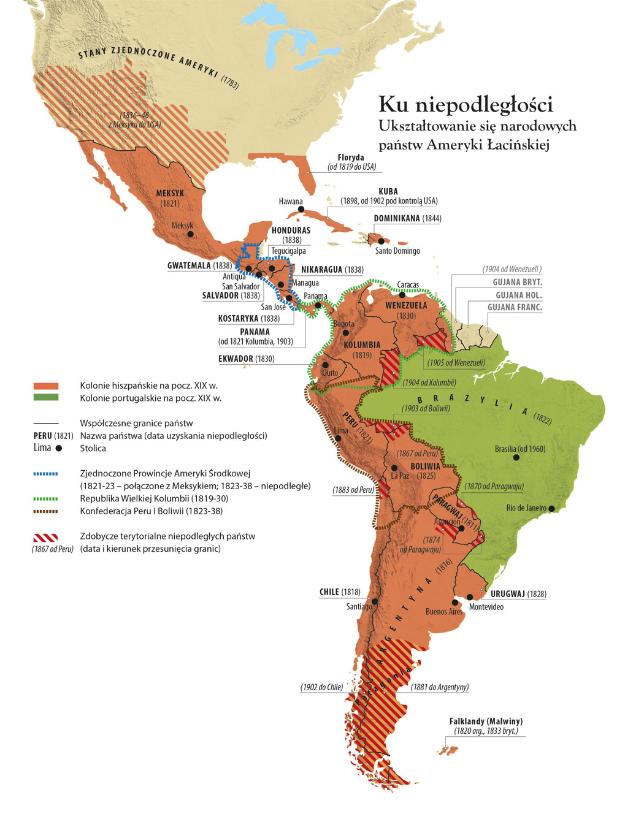 Hispanoameryka. Różne są przyczyny, które doprowadziły do powstania niepodległych państw narodowych w dzisiejszej Ameryce Łacińskiej. Z jednej strony największe znaczenie przydaje się wydarzeniom w Europie pogrążonej w konwulsjach wojen napoleońskich. Z drugiej – podkreśla dynamikę zmian obejmujących społeczeństwa hispanoamerykańskie na przełomie XVIII i XIX w. Są i tacy, którzy twierdzą, że kwestia niepodległości wcale wtedy nie była oczywista.