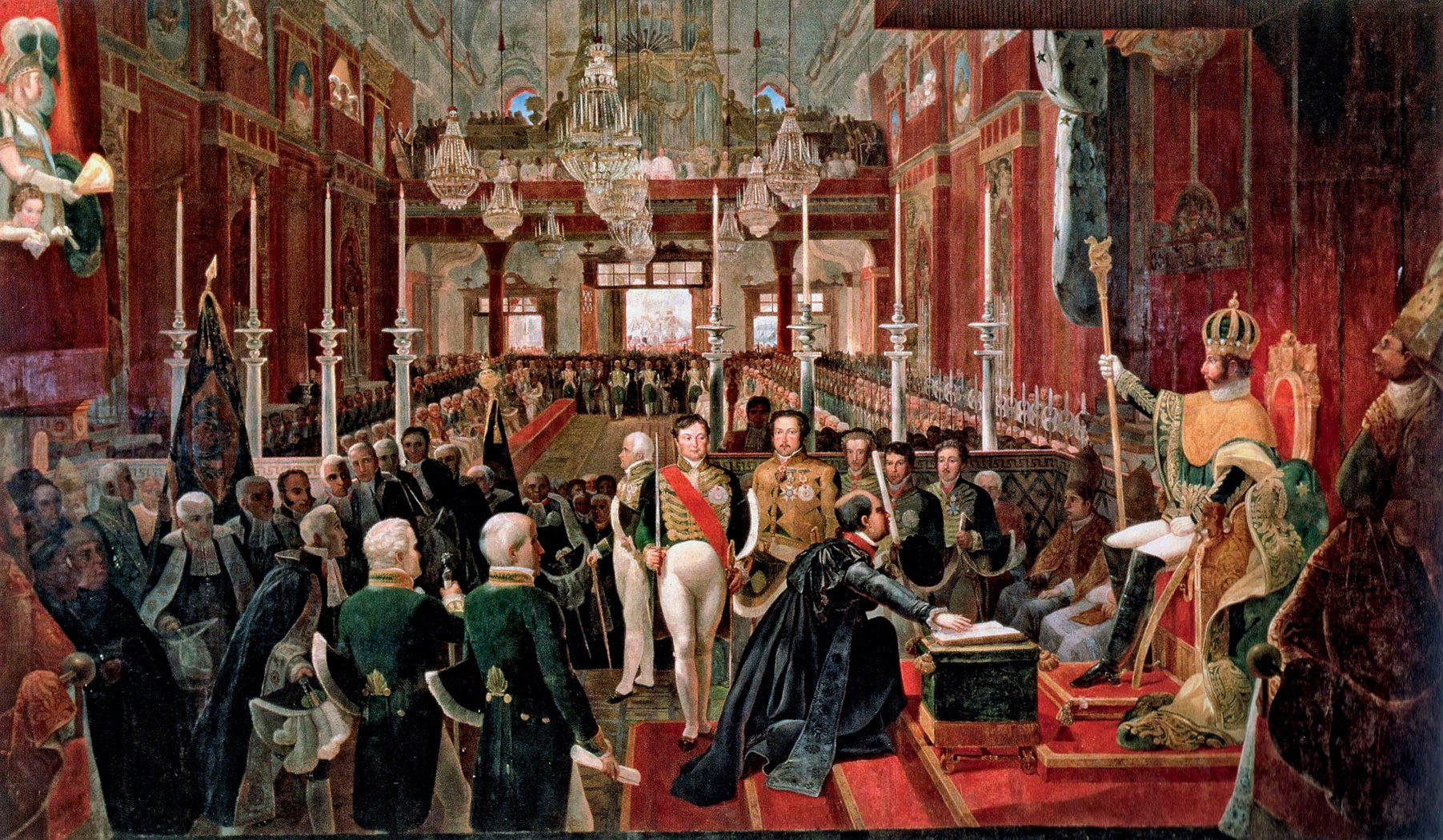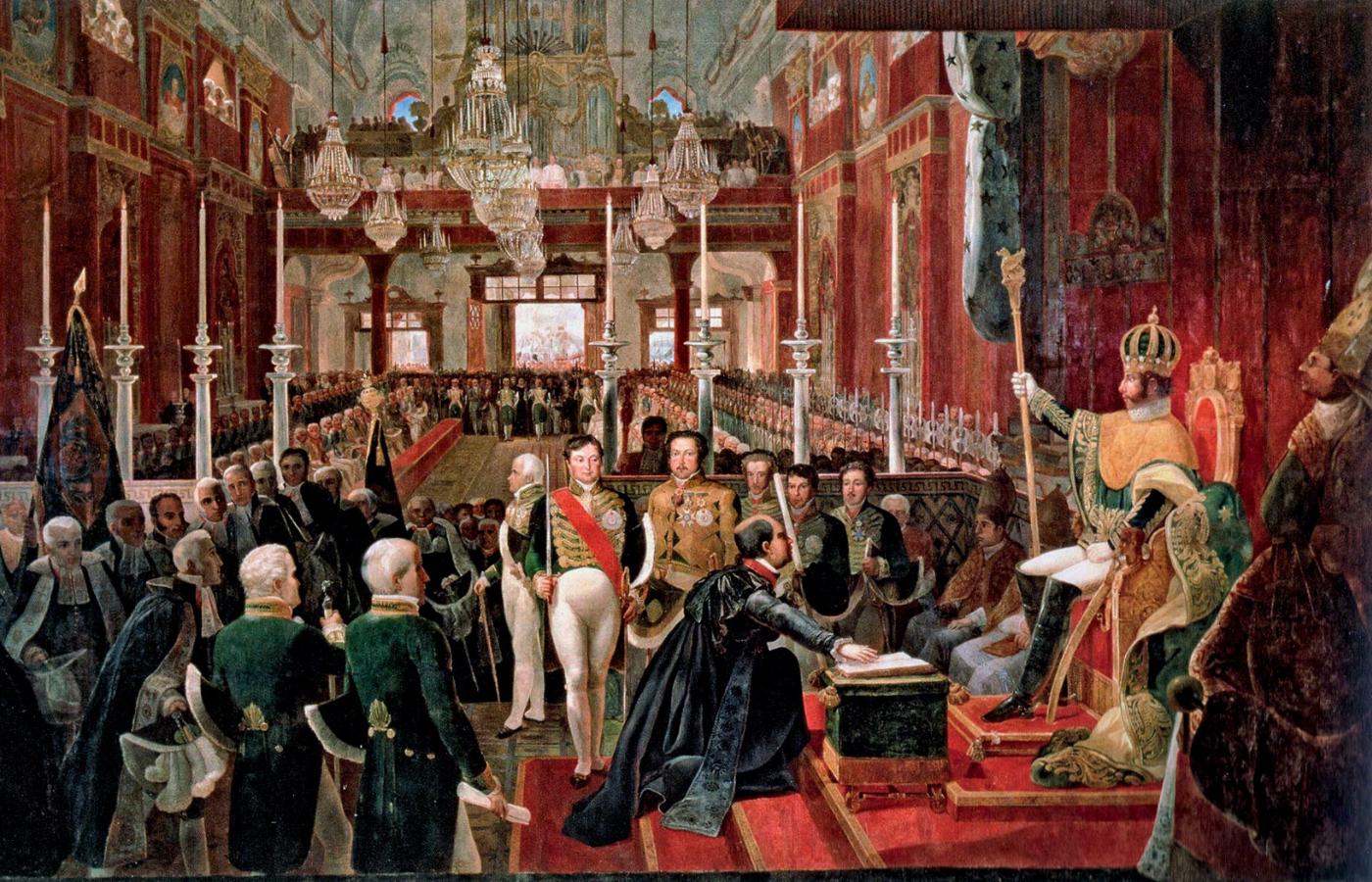 Konstytucyjna monarchia dziedziczna. Piotr I. Efektem aksamitnego rozwodu z Portugalią, w ramach polityki dynastycznej Braganzów, było zachowanie ustroju monarchicznego. Pierwszym cesarzem Brazylii został syn króla Portugalii Jana VI – Piotr I, który odmówił powrotu do Lizbony i przywrócenia statusu kolonialnego kraju. Wybory do konstytuanty w 1823 r. ujawniły jednak podział na bardziej liberalne stronnictwo brazylijskie oraz konserwatywne stronnictwo portugalskie, wzywające do zachowania związków z Lizboną. Przecinając spory polityczne, cesarz osobiście sformułował konstytucję państwa. Na jej mocy Brazylia stała się konstytucyjną monarchią dziedziczną, władzę ustawodawczą powierzono dwuizbowemu Zgromadzeniu Ogólnemu, ustanowiono podział państwa na prowincje.