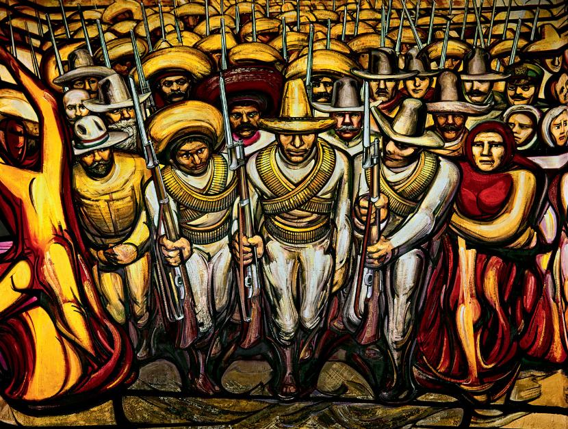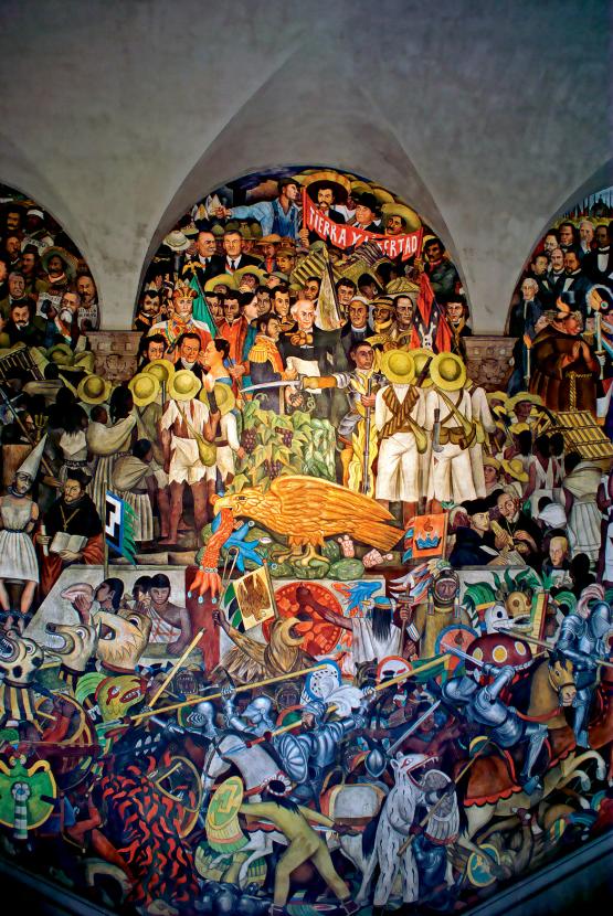 Rewolucja. W średniowieczu obrazy Hieronima Boscha – pełne postaci, symboli i ich powiązań – można było oglądać godzinami, niczym dzisiejsze filmowe seriale. Mistrzowie sztuki przemawiali do ludzi, którzy w większości byli analfabetami. Rewolucyjny Meksyk z początku XX w. potrzebował podobnego malarstwa. Na to zapotrzebowanie odpowiedzieli trzej malarze: Diego Rivera (1886–1957), David Alfaro Siqueiros (1896–1974) i José Clemente Orozco (1883–1949). Odrzucili naśladowanie sztuki europejskiej, inspirując się kulturą prekolumbijską i ludową. Nawoływali do powrotu do korzeni i twórczości wolnej od akademizmu. Dzięki zamówieniom ministra edukacji publicznej José Vasconcelosa rozpoczęli malowanie wielkoformatowych murali. Na ściennych malowidłach przedstawiali historię Ameryki Łacińskiej: Indian, konkwistadorów, pracę chłopów, rewolucję, która miała zapewnić szczęście Meksykowi. Tematyka marksistowska mieszała się z katolicką wizją stworzenia świata, bóstwa Indian z socrealizmem.