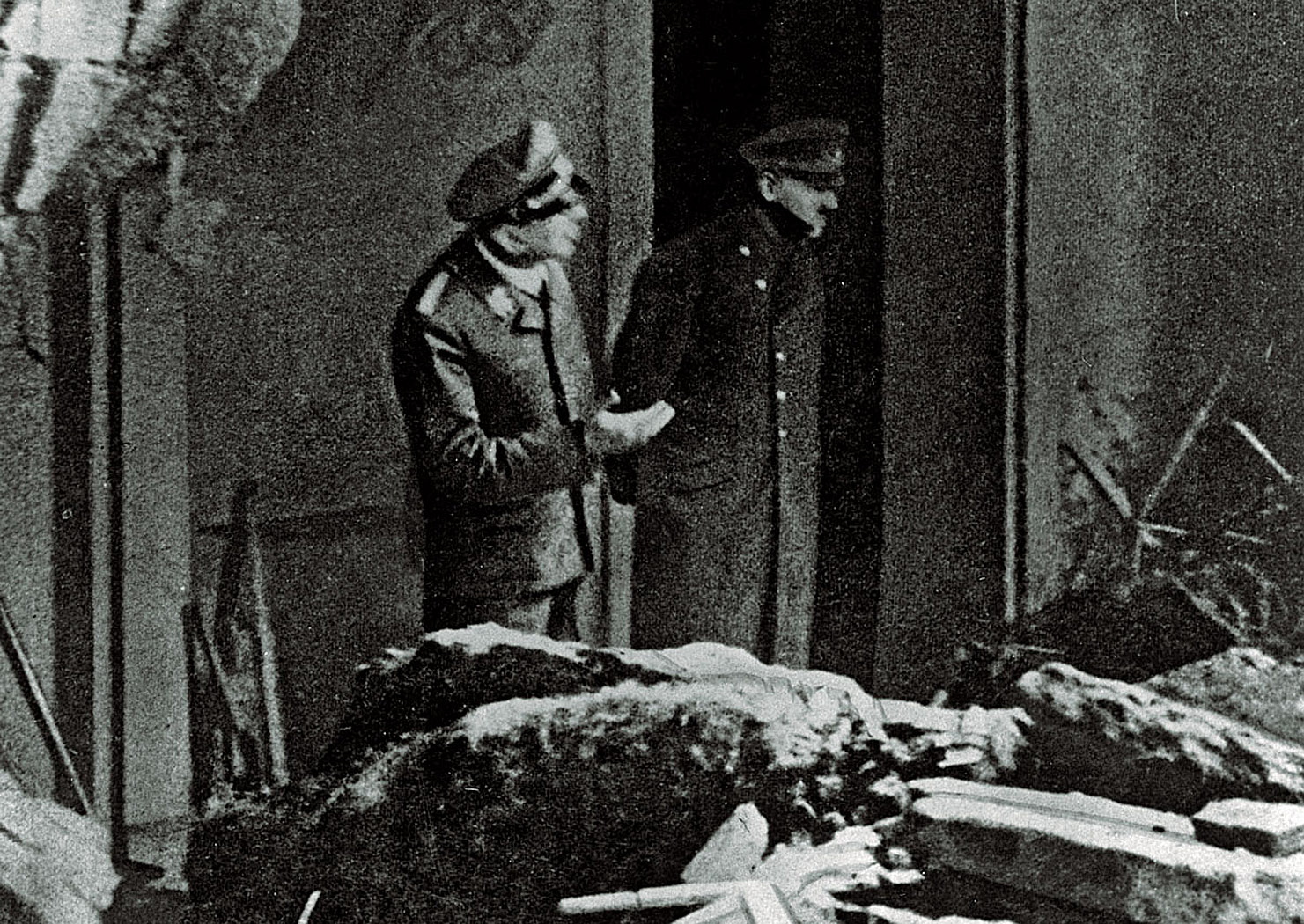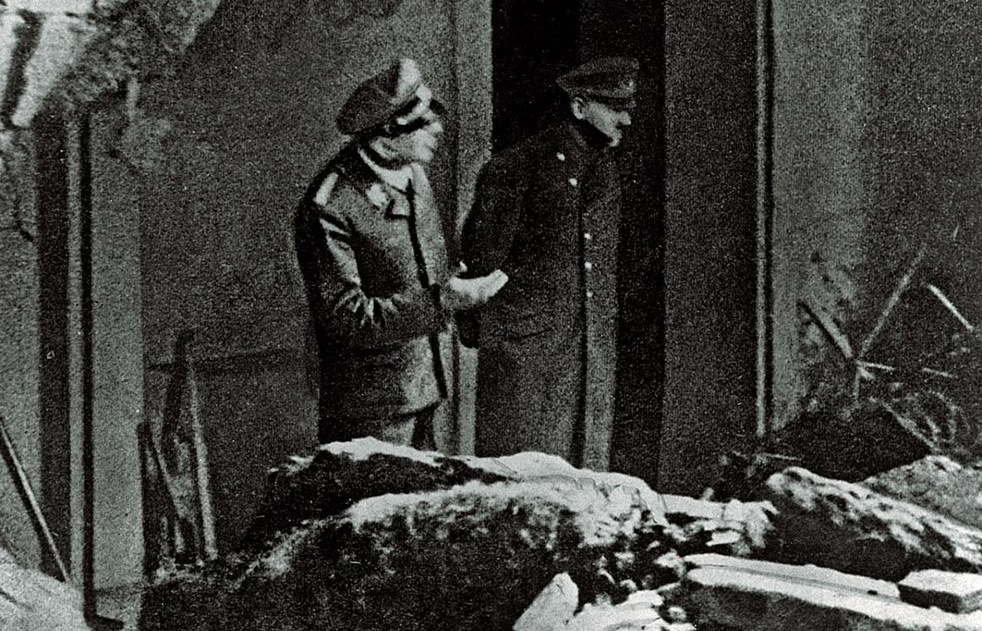 Hitler powitał ich na progu, oddał uściski dłoni ze słowami dziękuję i powrócił do gabinetu. Potem, jak zawsze, krótka nocna narada na temat sytuacji frontowej, herbatka z Ewą i od godz. 9 rano wymuszony pigułkami sen. Ale ledwie zasnął, budzenie w trybie alarmowym: gen. Burgdorf przyniósł wiadomość, że Rosjanie przerwali front pomiędzy Guben i Forst, podjęto kontruderzenie po rozstrzelaniu dowódcy, który zawiódł... Hitler przyjął raport spokojnie, polecając, by obudzić go o godz. 14.00. Wtedy zabawiał się ze szczeniakiem Wolfem (od jego ulubionej owczarki Blondi), zjadł obiad, jak zawsze w towarzystwie Ewy Braun i sekretarek, potem podjął trud – wymagający pokonania pięćdziesięciu schodów – wyjścia na zewnątrz, do parku otaczającego Kancelarię Rzeszy, gdzie czekali w szeregu, z ramionami wzniesionymi w niemieckim pozdrowieniu, ludzie z najwyższej elity III Rzeszy.