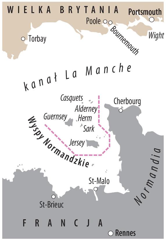 Aksamitna okupacja. Mimo że Brytyjczycy zwyciężyli w Bitwie o Anglię, czyniąc nierealnym nazistowskie plan inwazji na Wyspy Brytyjskie (kryptonim Operation Seelöwe), pewien obszar króla Jerzego jednak znalazł się pod władaniem niemieckim. Dotyczy to Wysp Normandzkich usytuowanych w kanale La Manche, na zachód od Normandii, niedaleko brzegów Francji. Największe z nich to Jersey i Guernsey, mniejsze – Alderney i Sark, i cały szereg zupełnie małych, ogółem obszar ok. 200 km kw. zamieszkanych przez ok. 100 tys. mieszkańców, obywateli brytyjskich. Hitlerowcy zajęli je bez walki na przełomie czerwca i lipca 1940 r. – Anglicy nie chcieli stawiać oporu, by oszczędzić ludność. Okupacja niemiecka trwała do samego końca: dokładnie 9 maja 1945 r. nazistowski gen. major Wulf przekazał, także bez walki, wyspy Brytyjczykom.