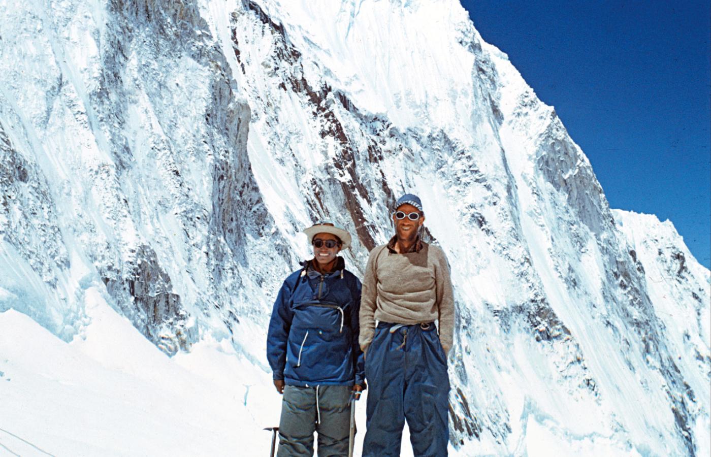 Gdy Hillary typowo anglosaskim zwyczajem wyciągnął rękę, by uścisnąć dłoń Tenzinga, Nepalczyk objął go z całych sił i zaczął klepać po plecach. Tenzing tę chwilę wyraził później słowami przyprawionymi lirycznym patosem przez spisującego je Jamesa Ullmana: „W tej wielkiej chwili, chwili, na którą czekałem całe życie, moja góra nie była dla mnie tylko martwym tworem ze skały i lodu – była czymś żywym, przyjaznym i bliskim. Była jak mama-kwoka, co tuli pod skrzydłami inne góry – swoje pisklęta”.
