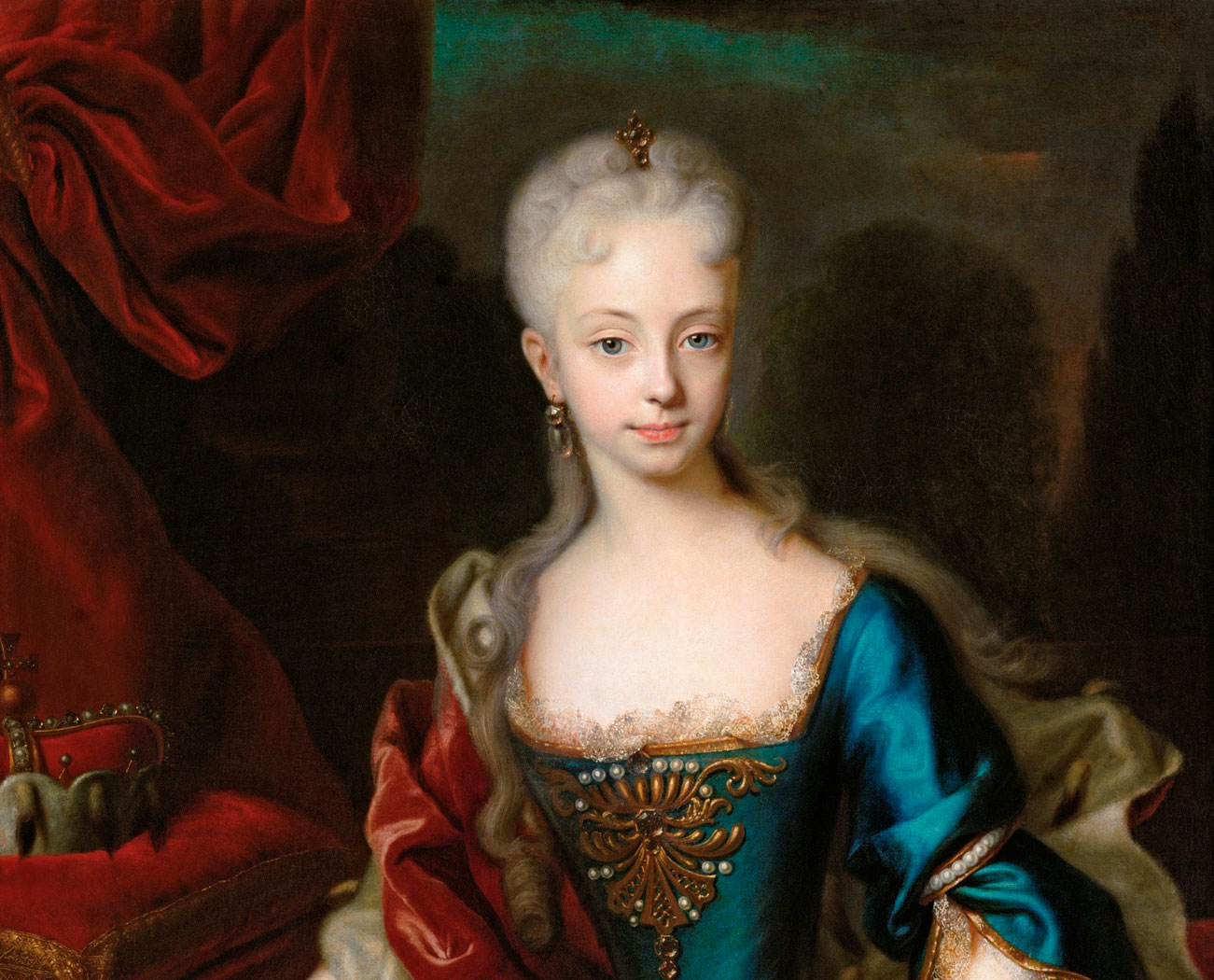 Cesarskie dziecko. Być córką cesarza na początku XVIII w. – co to właściwie znaczyło? Wielki wiedeński pałac Hofburg, z dziedzińcami i bramami, musiał się wydawać małej Marii Teresie kosmosem samym w sobie. Tłumy ludzi – dworzanie z najlepszych rodów szlacheckich i arystokratycznych, nieskończona liczba służby, różnorodność strojów, różnorodność języków. Od najwcześniejszych miesięcy słyszała niemiecki, francuski, łacinę, włoski, hiszpański – a przy nieoficjalnych okazjach z pewnością języki „plebejskie”: węgierski, czeski, chorwacki, dialekty południowosłowiańskie. Do tego sztywna, dostojna etykieta hiszpańska, zapożyczona przez wiedeńskich Habsburgów od bogatszych kuzynów z Madrytu. I wszechobecna sztuka w życiu dworskim: opera, bale, śpiewy.