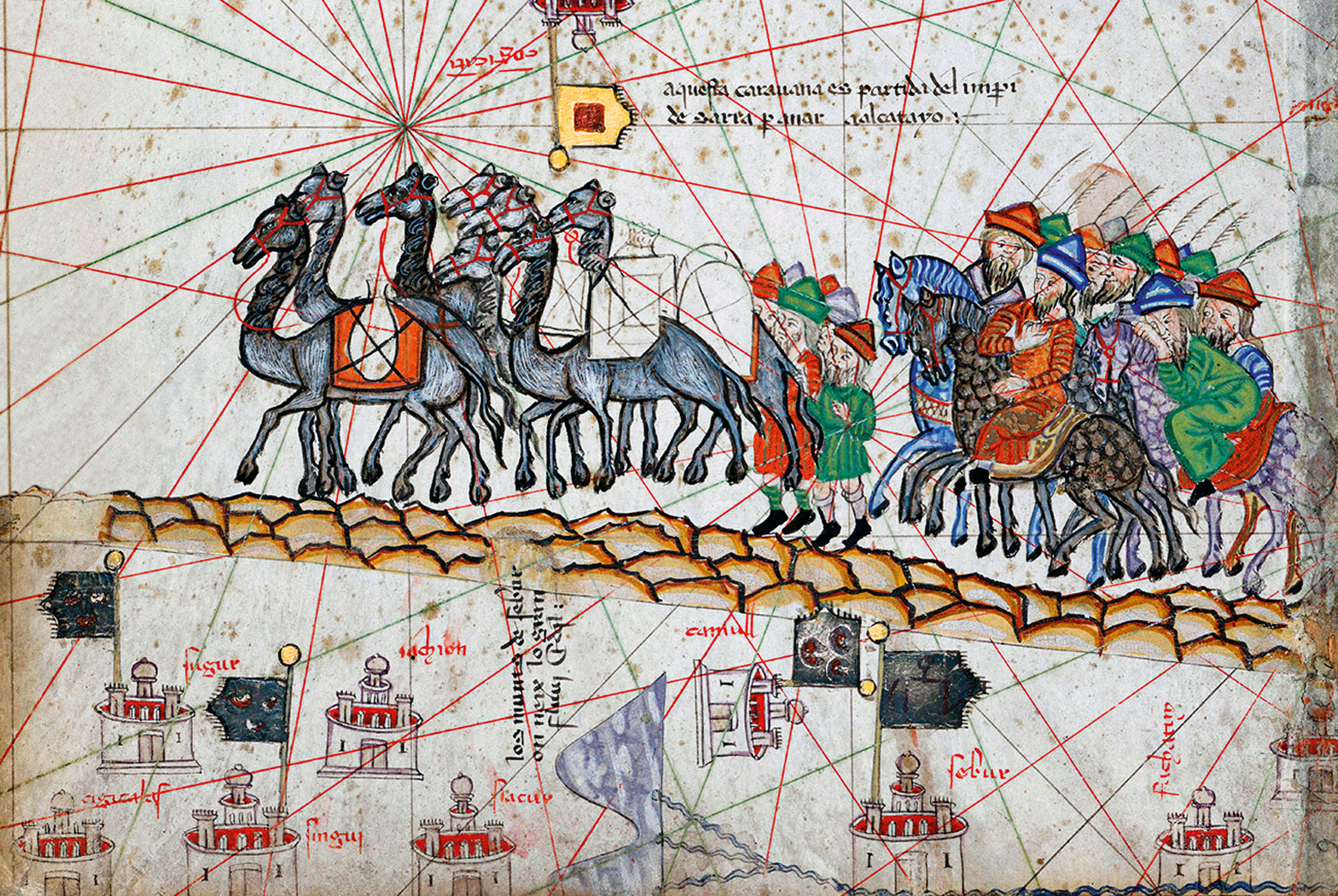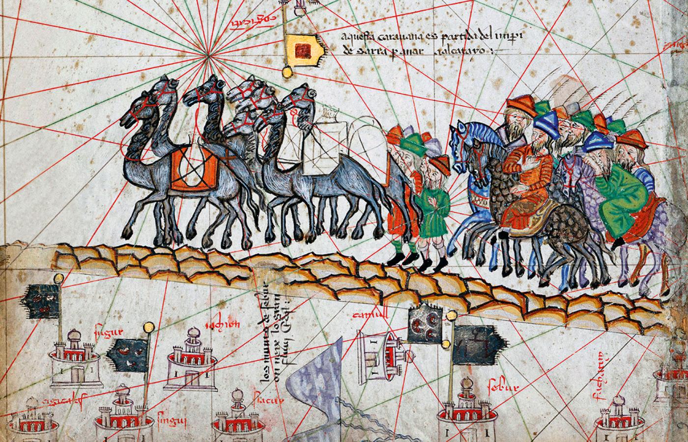 Na lądzie. Po drogach lądowych podróżowano w chronionych przez najemników karawanach. Kluczowe dla tego typu transportu były wielbłądy, zarówno jednogarbne dromadery, wykorzystywane najczęściej na Bliskim Wschodzie, jak i baktriany o charakterystycznych dwóch garbach, przemierzające piaszczyste tereny Azji Środkowej i Chin. Zwierzęta te są świetnie przystosowane do pokonywania dużych odległości każdego dnia, mogąc przeżyć nawet do dwóch tygodni bez wody, spożywając pustynne rośliny, które nie nadają się na paszę dla koni. W pełni obciążone były w stanie pokonać aż 40 km dziennie, co czyniło je bezkonkurencyjnymi liderami transportu na lądowym Szlaku Jedwabnym. Dorosłe zwierzę mogło przenieść do 300 kg ładunku w zależności od odległości, jaką musiało pokonać, i stanu jego zdrowia.