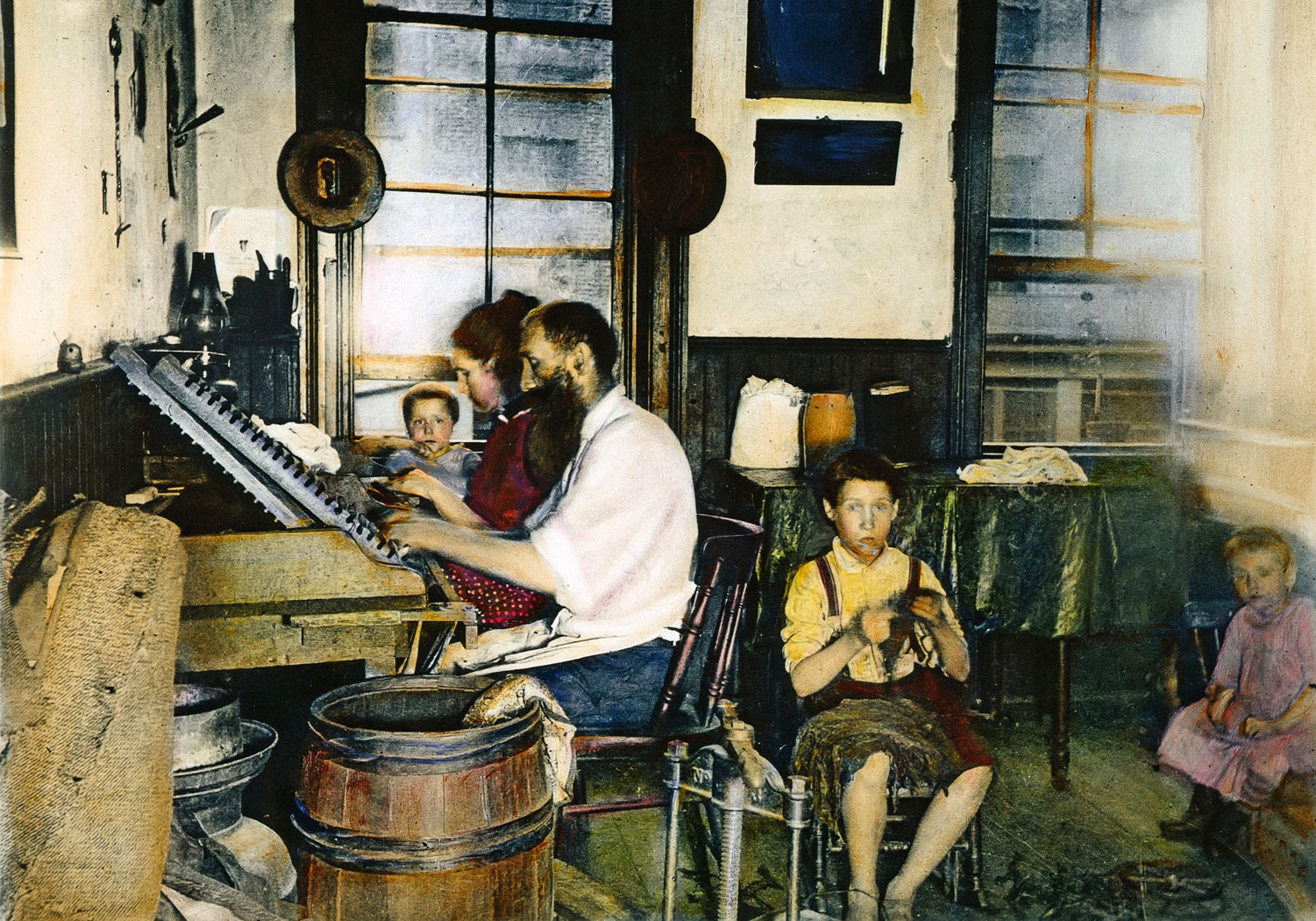 Jeden z pokoi (bez okna czy innej formy wentylacji) służył za sypialnię rodzicom i jednemu, czasem dwójce dzieci. Pokój dzienny stanowił sypialnię dla kolejnych dzieci, które układano na podłodze na siennikach albo przystawiając krzesła do znajdującej się tam leżanki. Za dnia pokój ten zmieniał się np. w pracownię krawiecką. Jedyne pomieszczenie z oknem w ciasnym, ciemnym i śmierdzącym stęchlizną mieszkaniu musiało więc pomieścić oprócz członków rodziny dodatkowo kilku robotników: osobę fastrygującą poszczególne kawałki materiału, jedną lub dwie zajmujące się wykończeniem oraz szwacza, najczęściej głowę rodziny. Szwacz zwykle siedział nad maszyną Singera przy otwartym oknie, dla lepszego światła i ochłody.