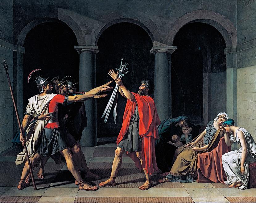 Królobójca, czyli Jacques-Louis David (1748–1825). Jego „Przysięga Horacjuszy” jest obrazem doskonałym, taka w nim kompozycja, psychologiczne napięcie i ważny w epoce oświecenia temat nawiązujący do czasów antycznych. Zresztą obraz został namalowany w Rzymie i był podziwiany przez tłumy. Goethe napisał z uznaniem: „Horacjusze Davida przeważyli szalę na korzyść Francuzów”. W Rzymie powstał także „Portret konny Stanisława Kostki Potockiego”, który można obejrzeć w Wilanowie. Po powrocie do Francji David cieszył się opieką Ludwika XVI, co nie przeszkodziło mu – gdy został deputowanym do rewolucyjnego Konwentu Narodowego – głosować za śmiercią monarchy. Malarz zasiadał w Komitecie Bezpieczeństwa Publicznego. Z tego czasu pochodzi jego kolejne arcydzieło „Śmierć Marata” i oddający grozę rewolucji niewielki szkic przedstawiający Marię Antoninę wiezioną na szafot.