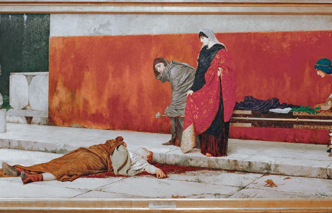 Pierwsza ofiara. Na blisko 70 cesarzy Imperium Romanum (pomijając uzurpatorów), którzy władali od 27 r. p.n.e. do 395 r. n.e., ponad 40 padło ofiarą zamachów. Gdyby dodać do tego zachodnich imperatorów – od Honoriusza do Romulusa Augustulusa – liczba ta jeszcze by wzrosła.