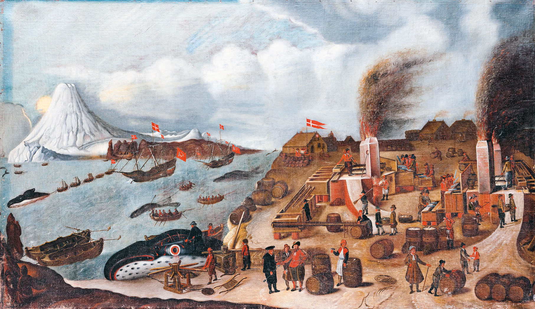 Unia norwesko-duńska została zerwana po wojnach napoleońskich, ale Grenlandia wraz z Islandią i Wyspami Owczymi pozostała przy Danii. W 1749 r. powstała Kompania Handlowa, która z królewskiego nadania w praktyce zarządzała wyspą, zajmując się wielorybnictwem, skupem skór, a także zaopatrując ewangelickich misjonarzy (w tym placówki prowadzone przez Hansa Egede w Gothab oraz misjonarzy Braci Morawskich w Neu-Herrnhut i Lichtenfels) i prowadząc faktorie w Christianshaab, Jakobshavn i Frederikshaab. Skutecznie przy tym, stosując również środki zbrojne, wyeliminowała z Grenlandii konkurencję holenderską.