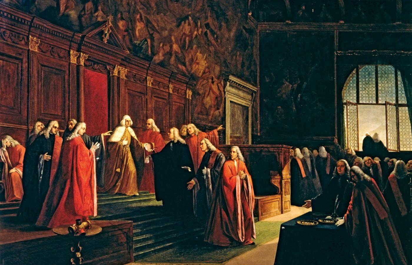 Oświeceniowe umysły patrzyły na Wenecję jak na dziwadło. Musiała ona wydawać się tworem anachronicznym: jej poszatkowane, rozrzucone po całym basenie Morza Adriatyckiego terytoria nie tworzyły spójnej całości. Różnił się również ich stopień zależności względem weneckiego senatu. Przez cały XVIII w. Wenecja pogrążała się w politycznym letargu. Zakończona w 1718 r. wojna z Imperium Osmańskim była jej ostatnią. Militarna słabość państwa w połączeniu z zapaścią gospodarczą pchnęły republikę ku polityce neutralności. Odtąd rządząca miastem arystokracja postanowiła oprzeć swój byt na dobrej woli sąsiadów. Z tego właśnie powodu Wenecja nie zareagowała, kiedy w 1719 r. Habsburgowie nadali należącemu do nich Triestowi status wolnego portu, co było jawnym naruszeniem dotychczasowego monopolu handlowego republiki na Adriatyku.