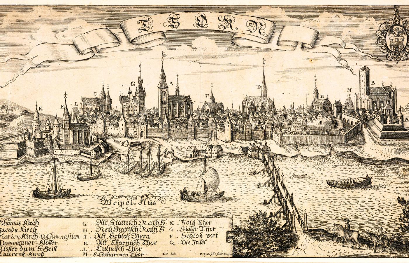 Toruń był prężnym ośrodkiem handlu wiślanego, a zarazem wielkim właścicielem ziemskim, bo do patrymonium, czyli terytorium miejskiego, należało ok. 360 km kw. Zamieszkiwało go wówczas 12–15 tys. ludzi. Piękno przylegającego do brzegów Wisły miasta tak zachwalał Jan Długosz w swojej „Historiae Polonicae”: „Toruń ozdobnymi budowlami i dachami z cegły palonej lśniącymi tak znamienity, że nic mu chyba pięknością, położeniem i blaskiem świetnym dorównać nie zdoła”.