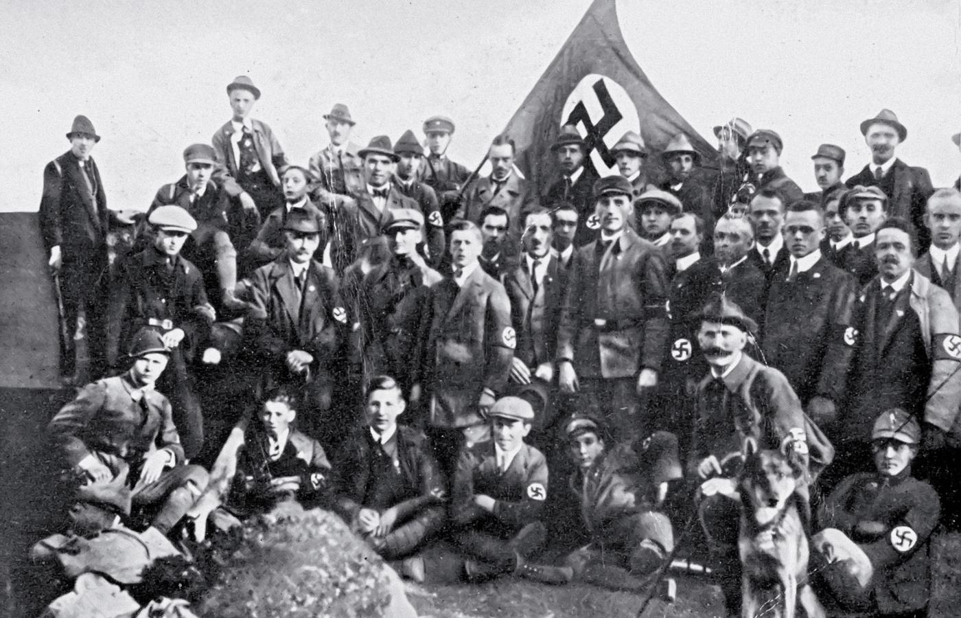 W Republice Weimarskiej. W styczniu 1919 r. powstała w Monachium niewielka, skrajnie nacjonalistyczna Niemiecka Partia Robotnicza. We wrześniu wstąpił do niej Adolf Hitler i wkrótce stał się w niej czołową postacią. Rok później nastąpiła zmiana nazwy na Narodowo-Socjalistyczną Niemiecką Partię Robotniczą (w niemieckim skrócie NSDAP), a w czerwcu 1921 r. Hitler został przewodniczącym ugrupowania; wprowadzono na wszystkich szczeblach zasadę jednoosobowego wodzostwa. Wkrótce powstał Oddział Szturmowy NSDAP – SA, bojówka zwalczająca przeciwników politycznych. NSDAP działała niemal wyłącznie w Bawarii, a ze względu na stosowanie przez nią przemocy fizycznej na wielu innych obszarach Niemiec została zakazana.