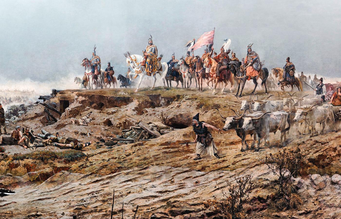 Madziarzy ze Wschodu. Przybycie w IX w. Madziarów ze stepów azjatyckich do Kotliny Panońskiej (Karpackiej) nie wróżyło Europie niczego dobrego, jako że wciąż pamiętano najazd Hunów sprzed wieków, zaś późniejsi bratankowie Polaków zawłaszczyli sobie (przynajmniej na jakiś czas) pochodzenie od tych okrutnych wojowników. Wspominano w późniejszych kronikach, że Madziarzy dorównywali Hunom tak okrucieństwem, jak i męstwem. Ziemie ich późniejszej ojczyzny (choć byli w nich przybyszami, zawłaszczyli je, pokonując słowiańskie państwo Wielkich Moraw) stały się krajem mlekiem i miodem (także dosłownie) płynącym. Rozległa równina, przypominająca rodzime stepy, to swoiste przedłużenie zielonej autostrady z Azji dla węgierskich koni i specyficznego arpadzkiego bydła (dziś chronionego jako dobro narodowe w Parku Narodowym Hortobágy). Na Nizinie Panońskiej mogli wyżywić siebie, jak i kluczowe dla ich zwycięstw wierzchowce – symbol każdego szanującego się Węgra.