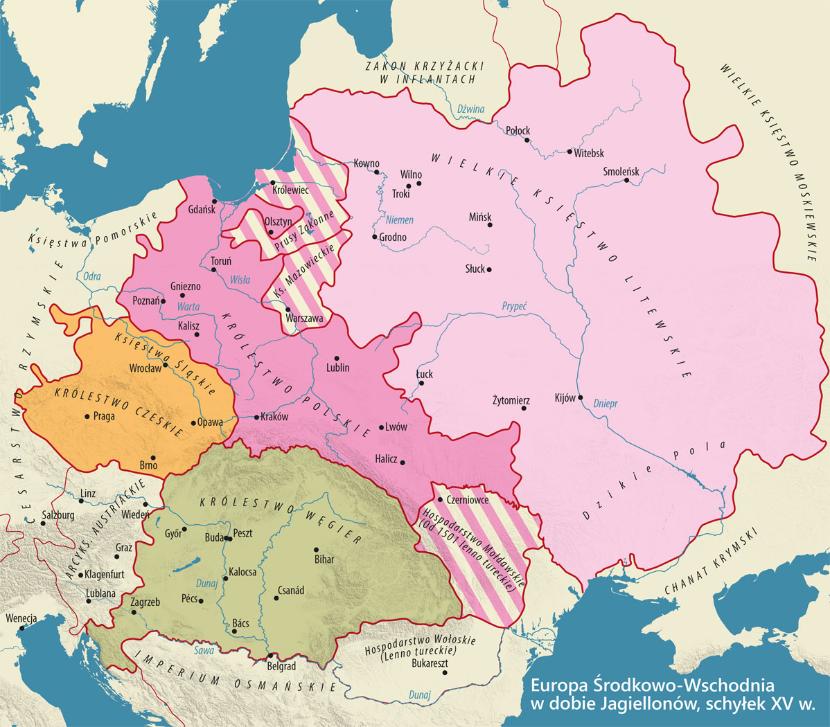 Litewski małżonek dla Andegawenki. Polskie elity wchodziły w epokę jagiellońską ze świeżymi wspomnieniami sojuszu Piastów z węgierskimi Andegawenami, zwieńczonych przejęciem przez Ludwika Węgierskiego spadku po Kazimierzu Wielkim oraz unią personalną, ale też zaniedbań, upadku autorytetu korony i konfliktów wewnętrznych związanych z nieobecnością króla, rezydującego w Budzie. Nie posiadając męskiego dziedzica, Ludwik po długich targach z polskimi możnowładcami zapewnił sukcesję krakowskiego tronu dla jednej ze swoich córek. Po wielu zawirowaniach ostatecznie stanęło na Jadwidze, którą matka, węgierska królowa wdowa Elżbieta Kontromanić (Bośniaczka), wyprawiła do Polski w 1384 r.