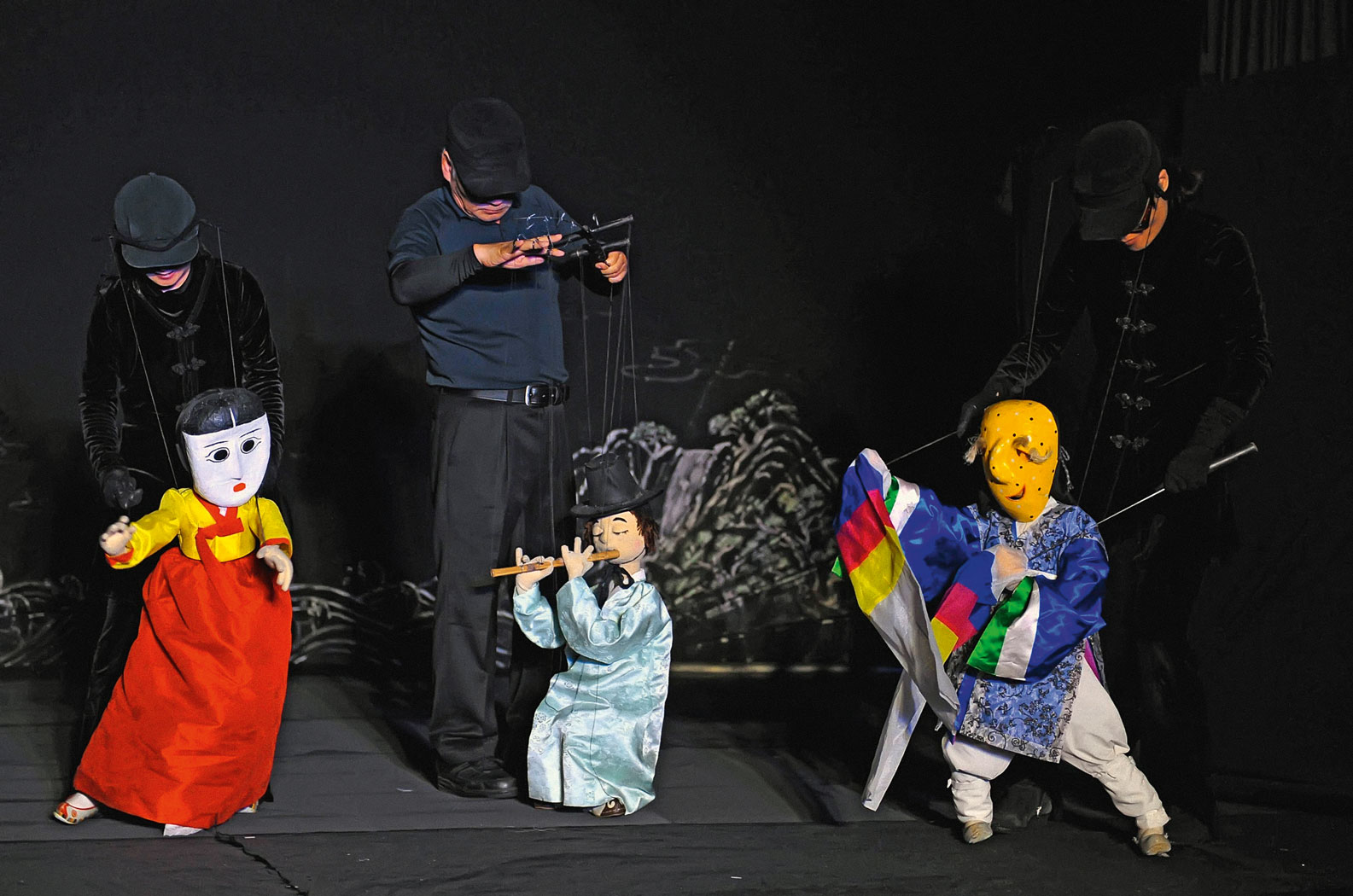 „Nieokrzesana zgraja”. Na rozwój klasycznego teatru koreańskiego wypływ miały tradycyjna sztuka widowiskowa Chin, rodzime tańce, obrzędy szamańskie, a także lokalne obyczaje kształtujące kulturę poszczególnych regionów Półwyspu Koreańskiego. Już w czasach starożytnych dotarły tam widowiska chińskie (san’ak, dosł. widowiska rozproszone, małpia muzyka). Obejmowały one popisy akrobatyczne i żonglerskie, m.in. rzucanie mieczami, taniec na linie, połykanie ognia i taniec z dwoma mieczami.