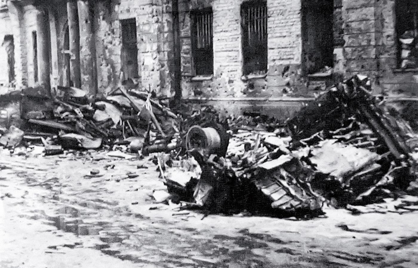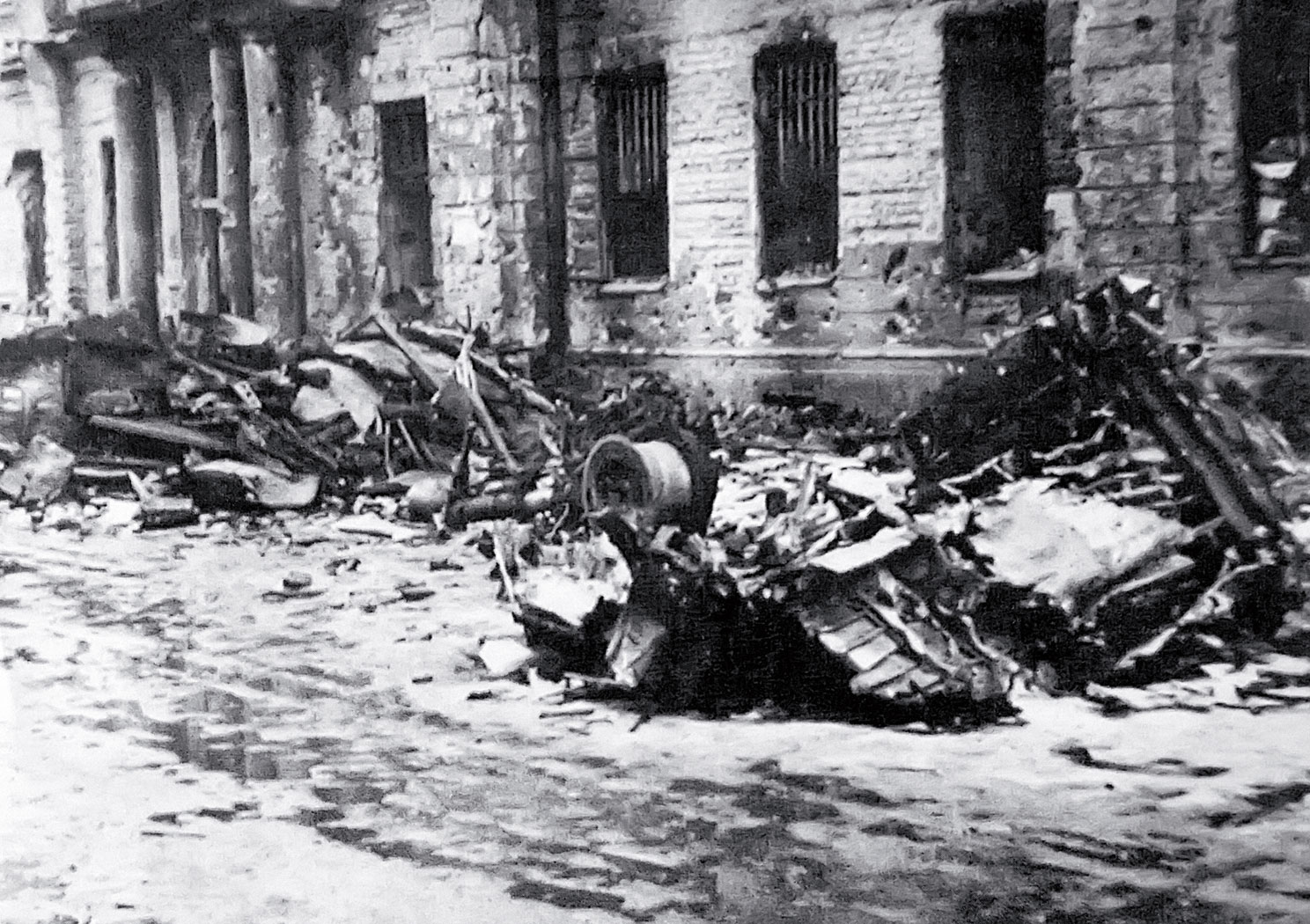 „Melduję, że dn. 15.VIII-44 g. 2–30 spadł zestrzelony samolot Halifax 4-o motorowy na kamienicę Miodowa Nr. 24, którą przebiwszy rozpadł się na części, które upadły na ul. Miodową” (zapis oryginalny) – to meldunek o tym samym samolocie z płonącego miasta kilka godzin później; podpisano „kpt. Wład”. W innym meldunku z Warszawy pisano: „ukazujące się 2 samoloty angielskie zostały b. silnie ostrzelane ogniem broni plot. Oba samoloty trafiono, jeden zawadził o budynek na Miodowej – roztrzaskując się, drugi płonąc odleciał. (...) Ciała lotników – kanadyjczyków pochowano” – podpisał „Dowódca Grupy Północ Wachnowski”.