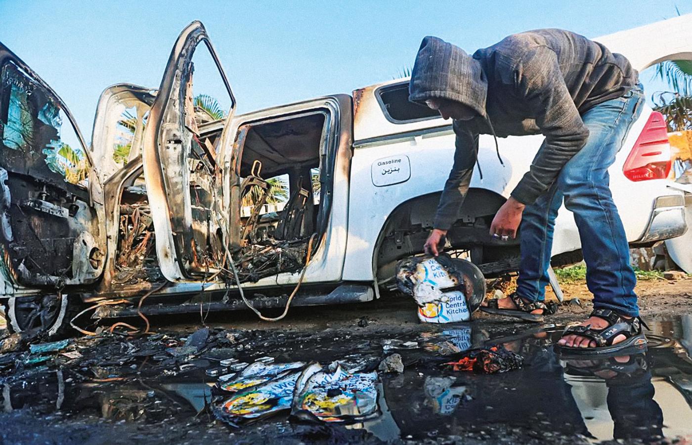 Zaatakowani wolontariusze. W poniedziałek 1 kwietnia 2024 r. wieczorem pracownicy World Central Kitchen (WCK), organizacji zajmującej się dostarczaniem żywności do miejsc ogarniętych kryzysami, rozładowali 100 ton żywności w jednym z magazynów w Dajr al-Balah w północnej części Strefy Gazy. Ok. 400 ton pomocy zorganizowanej przez WCK i Zjednoczone Emiraty Arabskie przypłynęło wcześniej drogą morską z Cypru. Niedługo po rozładunku w pojazdy (dwa opancerzone i jeden zwykły), którymi poruszali się pracownicy tej organizacji, trafiły rakiety. Z nagrań wideo i zdjęć wynika, że jeden z samochodów spłonął, w innym rakieta wybiła dziurę w dachu. W wyniku ataku zgięło siedem osób, w tym obywatele Australii, Polski i Wielkiej Brytanii oraz jedna osoba z obywatelstwem amerykańsko-kanadyjskim, a także palestyński kierowca.