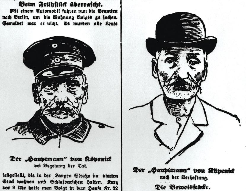 Przebrany w skompletowany u kilku handlarzy starzyzną mundur kapitana 1 Pułku Gwardii, zatrzymał w południe 16 października 1906 r. na berlińskiej ulicy oddziałek żołnierzy i podporządkował sobie dziesięciu z nich, w celu – jak stwierdził – wykonania rozkazu z najwyższego szczebla. Kolejką pojechali do Köpenick, dziś dzielnicy Berlina, wtedy jeszcze odrębnego miasteczka, gdzie Voigt kazał zająć tamtejszy ratusz i aresztować w „imieniu Jego Cesarskiej Mości” burmistrza Georga Langerhansa i sekretarza miasta Rosenkranza. Przebywającym w budynku żandarmom rozkazał utrzymanie porządku i odizolowanie ratusza, miejskiemu kasjerowi polecił zaś przedstawić bilans. Stwierdził brak 1 marki i 67 fenigów, a całą gotówkę (3557 marek i 45 fenigów) nakazał zapakować i zapieczętować. Pokwitowanie podpisał jako kapitan von Malzahn. Pikanterii dodaje szczegół, że było to nazwisko naczelnika jego ostatniego więzienia.
