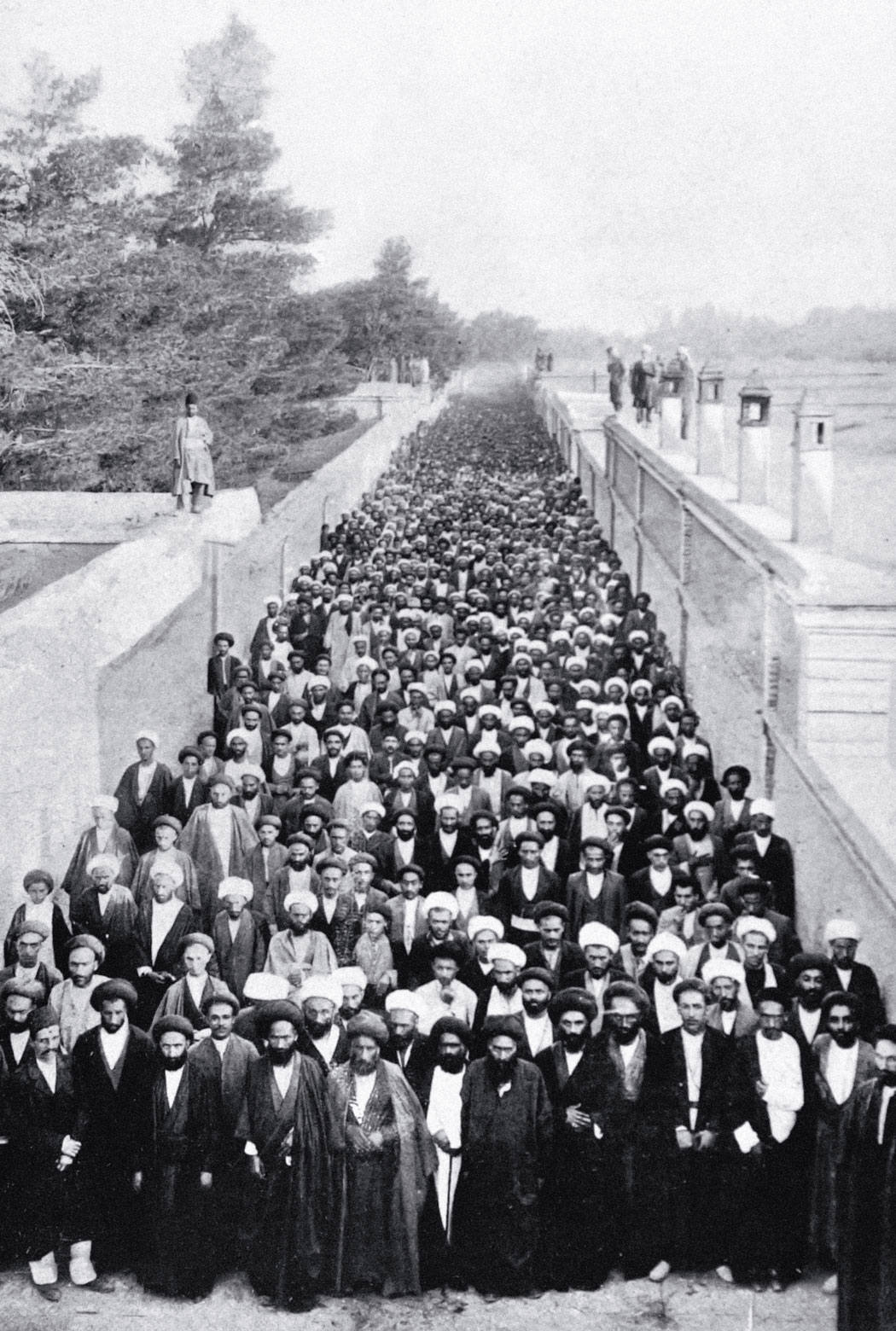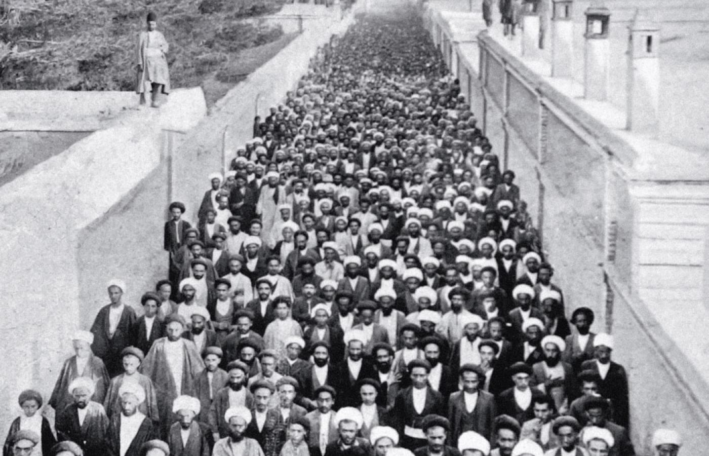 Mniejsza hidżra. Lata 1905–06 miały okazać się przełomowe w dziejach Iranu. Sytuacja była wówczas niezwykle napięta po serii wydarzeń i skandali, z których najbardziej dramatyczna była sprzedaż w niewolę turkmeńską dziewcząt z Quczanu, gdyż ich rodziny nie mogły zapłacić podatków. Wyciekła również fotografia przedstawiająca belgijskiego urzędnika w Teheranie, Josepha Nausa, przebranego na bal maskowy w strój mułły, co zostało odebrane jako zniewaga islamu. Afery te podkopały resztki zaufania do władzy i wywołały oburzenie w społeczeństwie. W Iranie z nadzieją przyjmowano wieści o klęsce Rosji w starciu z Japonią, paliwo odnajdowały też iskry rewolucji skrzące z terenów północnego sąsiada.