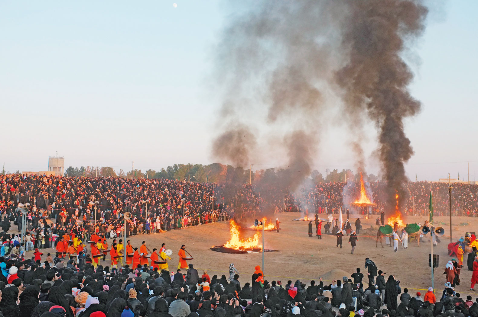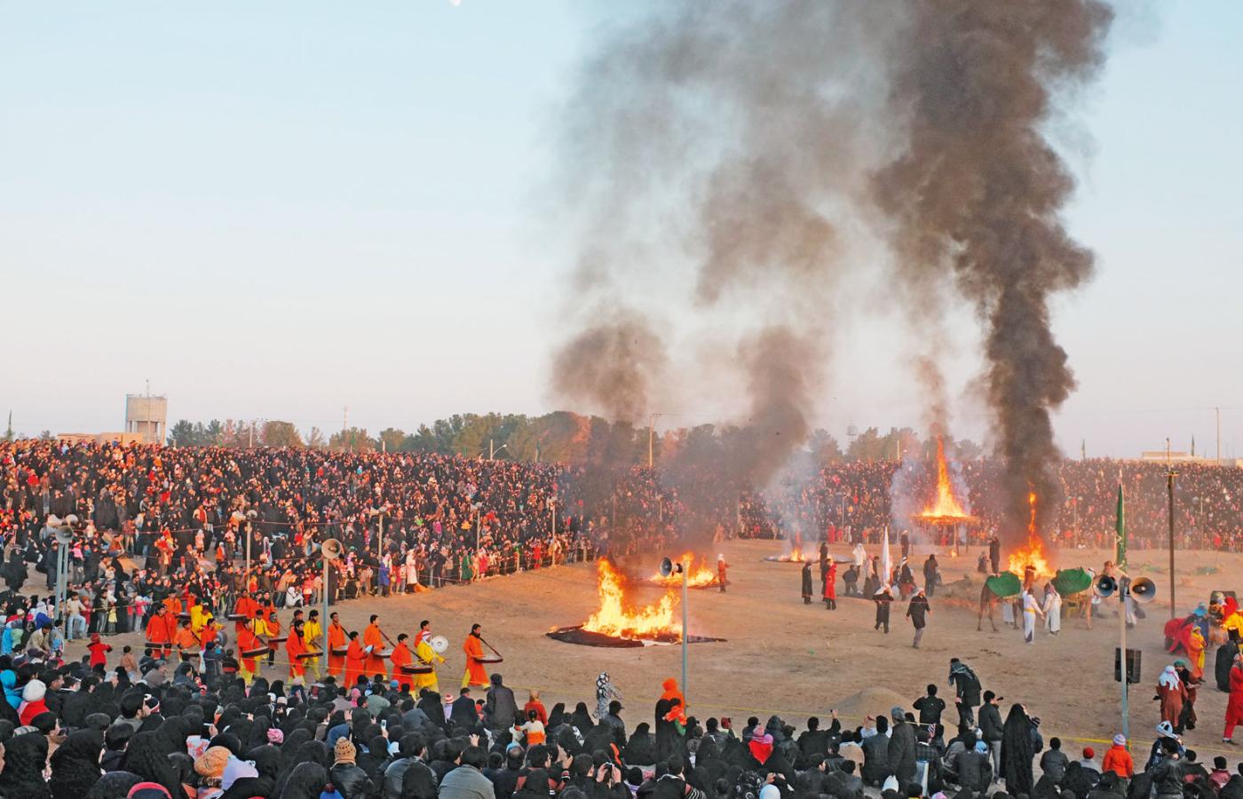 Bitwa. Według szyitów Jazid był człowiekiem złym do szpiku kości. Gdy został kalifem (drugim z dynastii Umajjadów, pan. 680–683), zbuntowali się mieszkańcy Kufy i wysłali posłańca do Medyny, gdzie przebywał Hosejn – wnuk proroka Mohammada (Mahometa). Chcieli, aby objął przywództwo powstania, a on odpowiedział na ich prośbę. Wyruszył na czele małego oddziału, któremu towarzyszyły kobiety z dziećmi. Gdy był w drodze, ludzie Jazida opanowali sytuację w Kufie i Hosejn, pozbawiony wszelkiego wsparcia, wpadł w pułapkę. Na pustyni pod Karbalą, niedaleko Eufratu, otoczyło go cztery tysiące rycerzy, odcinając dostęp do wody. Był październik, upał. Przez dziesięć dni siły wierne kalifowi próbowały go przekonać, aby się poddał i przyrzekł wierność Jazidowi. On jednak odmówił i rozpoczęła się bitwa, w której został brutalnie zabity, tak jak wszyscy (poza jednym) mężczyźni, którzy z nim byli. Nie oszczędzono nawet chłopców, a kobiety i dziewczynki wzięto do niewoli i poprowadzono przez pustynię do Damaszku – stolicy kalifatu.