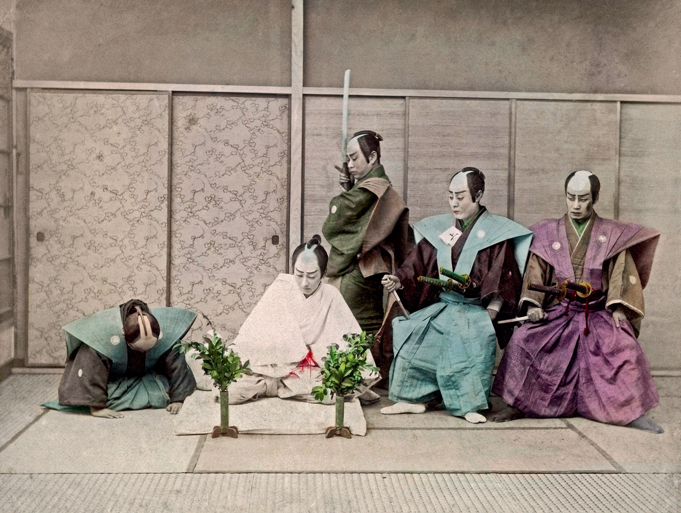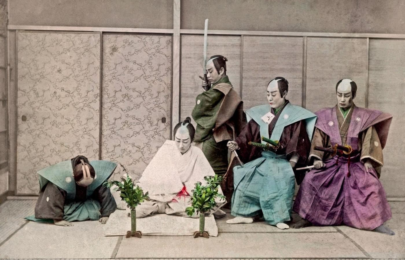 Istotnym elementem samurajskiego etosu była genealogia rodowa, z dużą przesadą unieśmiertelniona na zwojach „Heike monogatari”. Podczas walki wojownicy wykrzykują tam długie kwestie, w których nie tylko chełpią się własnymi zaletami w boju, lecz także sławią czyny przodków. Podstawowym kryterium aktywności wydaje się honor grupy. Na przeciwległym biegunie, jako największa ujma, znajdują się hańba, tchórzostwo i nielojalność. Aby uniknąć tych zagrożeń, wojownicy często wybierają śmierć jako drogę zachowania twarzy. Odwaga i poświęcenie życia w celu uniknięcia hańby splatają się w zwyczaju seppuku – samobójstwa poprzez przecięcie brzucha (popularny na Zachodzie wyraz harakiri jest uznawany w Japonii za nieelegancki i nie niesie z sobą etyczno-filozoficznego znaczenia tego rytuału).
