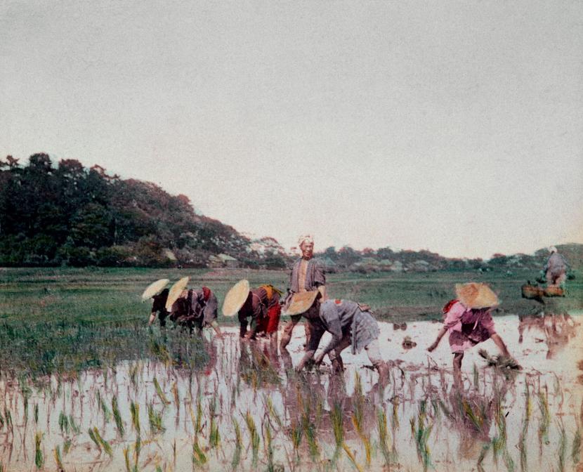 Ryż jako główne pożywienie. Podstawą kuchni japońskiej, już od czasów mitologicznych, jest ryż, najważniejsze zboże uprawiane w Japonii. Dawniej zboże to miało ogromny wpływ na sposób życia i mentalność Japończyków, ponieważ właśnie wokół niego rozwinęły się wierzenia religijne (shintō), obrzędy i zwyczaje kulinarne. W Japonii uprawia się dwa gatunki ryżu: pierwszy, należący do odmiany Oryza sativa japonica, charakteryzuje się krótkim ziarnem oraz wysokim stopniem kleistości, co jest istotne przy spożywaniu go pałeczkami; drugi to tzw.