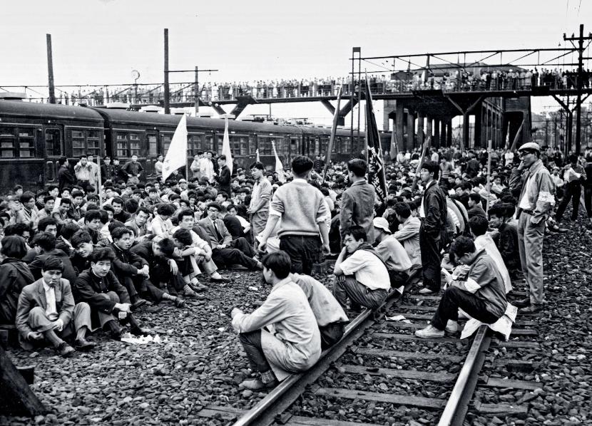 Powojenny rewizjonizm. Jednym z efektów amerykańskiej okupacji był podział japońskiej elity politycznej na trzy liczące się grupy: socjalistów, początkowo faworyzowanych przez sztab gen. Douglasa MacArthura (postrzeganych jako siły demokratyczne); środowisko byłych urzędników skupionych wokół Yoshidy Shigeru, którzy w ramach rządów pośrednich byli realizatorami reform (w tym politycznych czystek); działaczy z przedwojennym stażem, przywróconych do aktywności publicznej w związku ze zmianą priorytetów Waszyngtonu wynikających z zimnej wojny. Ci ostatni, w tym Hatoyama Ichirō oraz Kishi Nobusuke, przystąpili w początkach lat 50. do rewizji reform zainicjowanych przez Amerykanów, domagając się m.in. zmian w ustawie zasadniczej. Postulowali przeredagowanie preambuły (przy zachowaniu zasad demokracji i idei wyrzeczenia się wojny agresywnej), przywrócenie cesarzowi statusu głowy państwa, ponowne rozpatrzenie kwestii praw i obowiązków obywateli, problemu samorządów lokalnych i funduszy publicznych. Jednak nade wszystko należało, ich zdaniem, zaznaczyć prawo Japonii do obrony w przypadku zbrojnej napaści. Art. 9 tejże konstytucji przewidywał bowiem, że „Japonia na zawsze wyrzeka się wojny, jak również użycia lub groźby użycia siły jako środka rozwiązywania sporów międzynarodowych”.