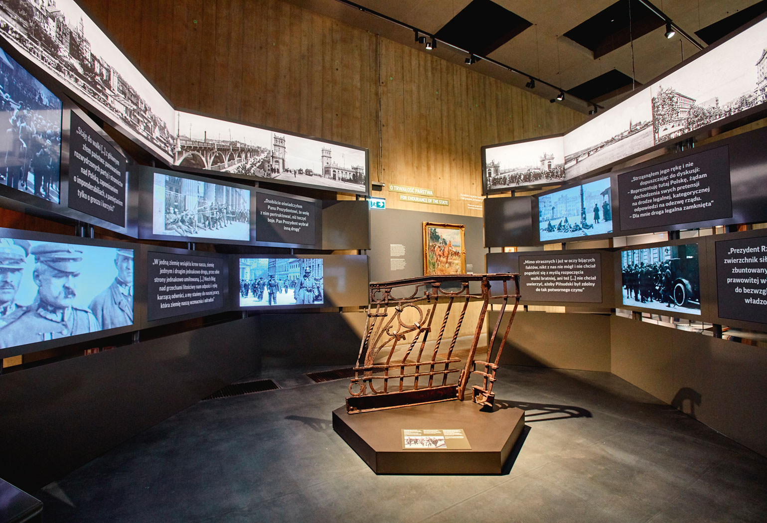 Jednym z tych przełomowych momentów, wyraźnie zaznaczonych w narracji wystawy stałej, są wydarzenia z maja 1926 r. Już na etapie prac nad scenariuszem zgodzono się co do ich znaczenia dla biografii bohatera muzealnej opowieści. Scena poświęcona przewrotowi majowemu otwiera galerię „Marszałek”, obejmującą lata 1926–35.