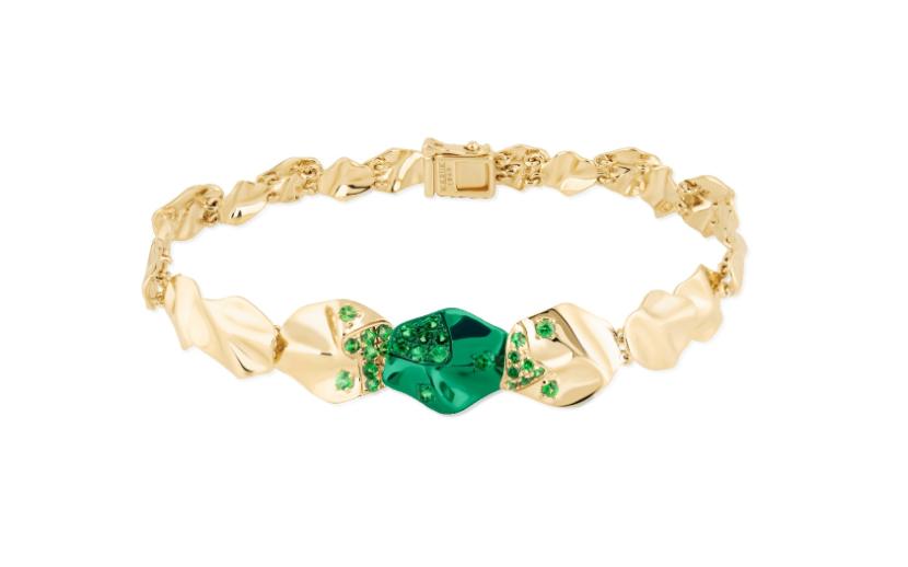 Biżuteria z tej kolekcji wykonana jest ze srebra i złota w zachwycających kolorach metalicznego różu, zieleni i granatu. Dopełniona subtelnym blaskiem kamieni szlachetnych i barwnych cyrkonii.