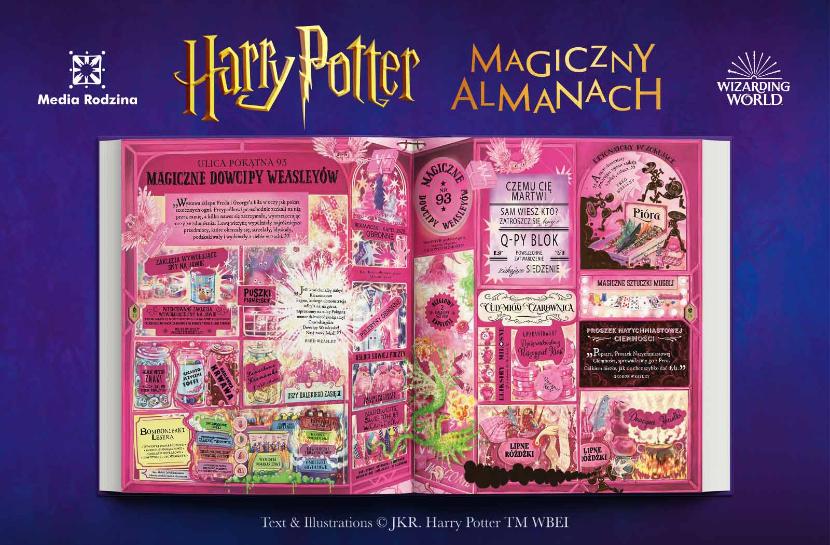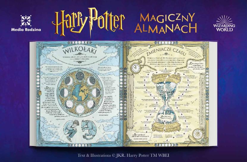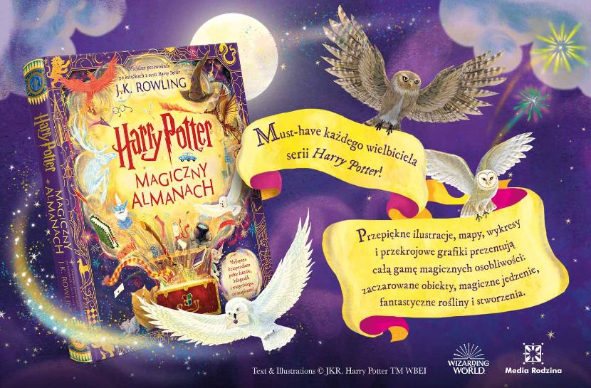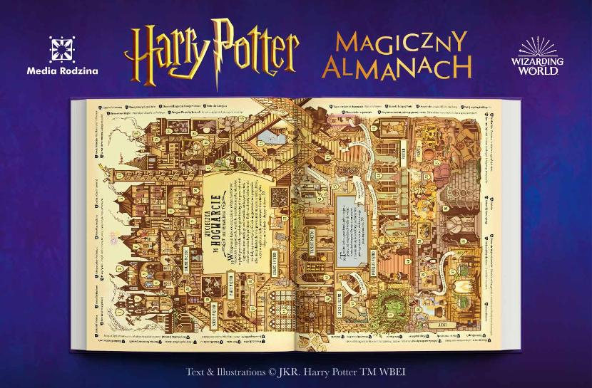 Podzielony na siedem części „Magiczny almanach” to must have każdego czytelnika. Pozwoli mu zgłębić informacje o ukochanych bohaterach, przeżyć na nowo ulubione sceny, zdobyć wiedzę o zaklęciach, poszukać ukrytych sekretów i oddać się fantazji, zwiedzając Szkołę Magii i Czarodziejstwa. Czytelnik znajdzie tu wszystko: od Tiary Przydziału po inkantacje zaklęć.