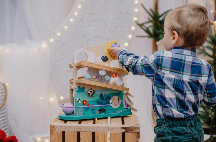 Kulodrom Gąsienica fascynuje maluchy. Śledzenie toczących się kul ćwiczy koordynację wzrokowo-ruchową i uczy zasady przyczyny i skutku. To klasyczna zabawka rozwojowa.