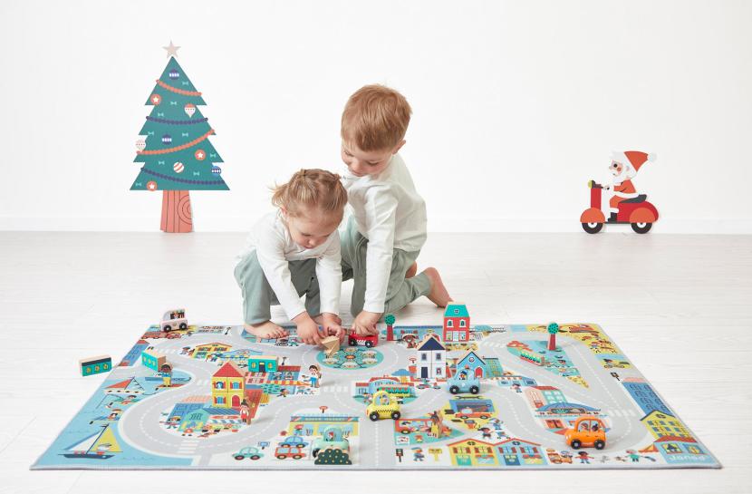 Seria Cross Roads to 4 tematyczne maty do zabawy oraz pasujące do nich drewniane klocki i pojazdy. Świetna zabawa w budowanie własnego świata, rozwijająca wyobraźnię przestrzenną i małą motorykę.