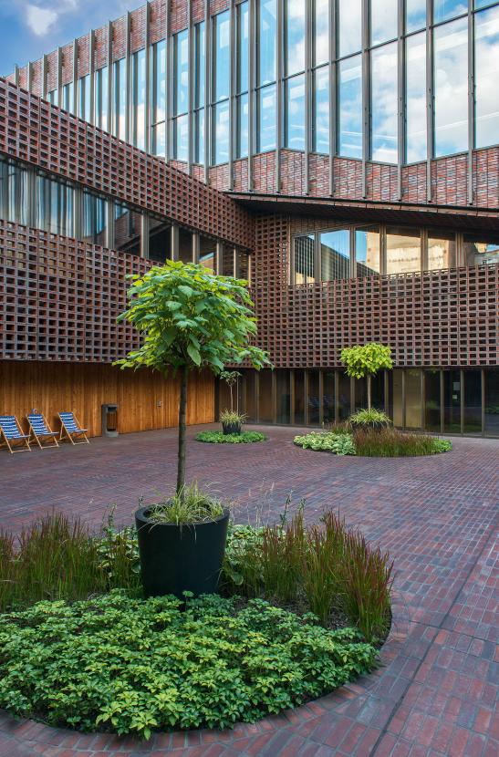 To świetny budynek. Wśród tradycyjnych kamienic stanął minimalistyczny obiekt, który dzięki ceglanemu ażurowi wpisał się w klimat okolicy. Na środku działki stał niepozorny obiekt po dawnej fabryce żarówek. Architekci go nie wyburzyli, ale obudowali nową strukturą. Dla mnie to myślenie zrównoważone – nie musimy wszystkiego zastępować nowymi rzeczami, sztuką jest wykorzystywanie tego, co mamy, czyli recykling.