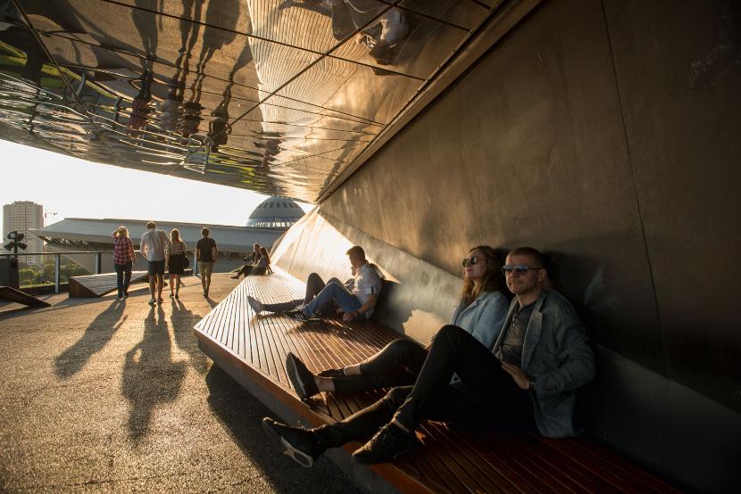 Podczas spaceru wdrapaliśmy się na dach Międzynarodowego Centrum Kongresowego, który otwiera Strefę Kultury.