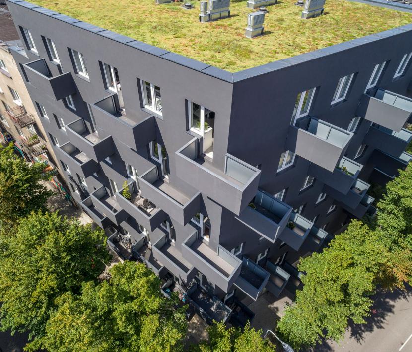 To był dla mnie ważny element projektu. Inwestycja miała niski budżet. Kombinowaliśmy, jak zrobić dobrą architekturę w zasadzie z niczego: mając ograniczone środki wyrazu, takie jak zwykły tynk na elewacji, plastikowe okna i balkony. Ale zielony dach udało mi się przewalczyć.