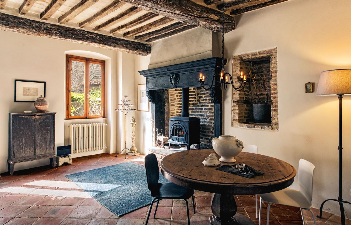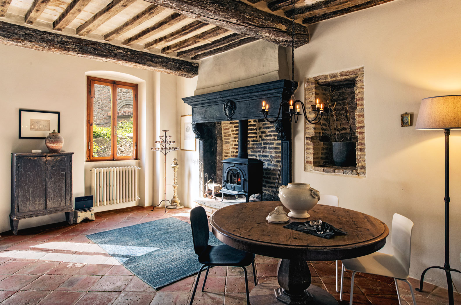 Za decyzją o kupnie akurat tego domu przemawiało kilka kwestii, przede wszystkim lokalizacja. Dom jest położony w starej części uroczego toskańskiego Sansepolcro, nieopodal Arezzo i Asyżu, w którym – w odróżnieniu od wielu innych włoskich miasteczek – życie nie zamiera zimą ani nie dusi się latem od nadmiaru turystów. W Sansepolcro po prostu miło się żyje, przez cały rok są tu otwarte restauracyjki i sklepy, funkcjonują też zawsze najrozmaitsze targi. Drugim argumentem była struktura domu: narożnego, oświetlonego z trzech stron, co wcale nie jest tak oczywiste w toskańskich miasteczkach z ich wąziutkimi uliczkami i kamienną zabudową z niewieloma oknami sprzed setek lat. I w końcu trzeci atut: wspaniały kominek z herbem i maszkaronami, niemal zbyt wspaniały do stosunkowo skromnej, rustykalnej budowli.