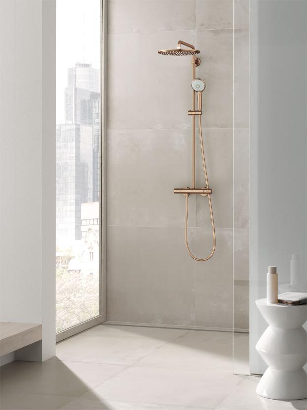 Ponadto sterowanie wodą i temperaturą jest zintegrowane z termostatem ShowerTablet – inteligentny przepływ wody zapewnia jeszcze większe bezpieczeństwo użytkowania, a rozwiązanie CoolContact sprawia, że korpus termostatu się nie nagrzewa.