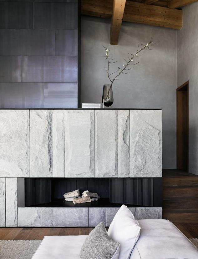 Przykładem takiej wyszukanej aranżacji, łączącej tradycyjny styl alpejski i powściągliwą miejską elegancję, może być wystrój domu znajdującego się w miasteczku Aurach w austriackim Tyrolu.