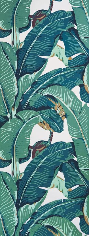 Botanik Albert Stockdale domyślił się, że nie chodzi o dosłowne odwzorowanie bananowca – raczej o fantazję, która tchnie we wnętrza powiew nowoczesności i egzotyki. Zaproponował rysunek odręczny, ale tak ekspresyjny i dynamiczny, że zleceniodawcy zaniemówili. Liście były jak żywe. Odwracały się i wywijały, pokazując jaśniejszy spód i pęknięcia krawędzi – nie można było od nich oderwać wzroku. Właściciele firmy, Remy i Lucile Chatain, poszli za ciosem – użyli rysunków liści w ich naturalnym, gigantycznym rozmiarze, gęsto układając je na powierzchni papieru.