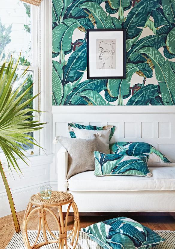Powstał w ten sposób nowy typ tapety – nie drobny wzorek, rzucik czy kratka, tylko tapeta totalna i triumfująca. Zapełniająca sobą wnętrze, niezostawiająca przestrzeni dla jakiejkolwiek innej dekoracji. Nakładano ją na jedną ze ścian i nagle wnętrze wypełniał bananowy busz. Martinique okazała się nie tylko nowym gatunkiem tapet, ale też zapowiedzią pop-artu – z jego fascynacją dużą oraz powtarzającą się formą. Zmysłowe bananowe liście idealnie pasowały do dekoracji drogich hoteli czy domów milionerów. I to pięciogwiazdkowy The Beverly Hills Hotel, najmodniejszy i najbardziej luksusowy w Los Angeles, rozreklamował wśród bogaczy ten sposób dekorowania ścian. Martinique zdobi do dziś ekskluzywny Fountain Coffee Room w tym hotelu i wiele luksusowych willi – jest synonimem nowobogackiego luksusu i wiecznie żywym „bananowym” klasykiem.