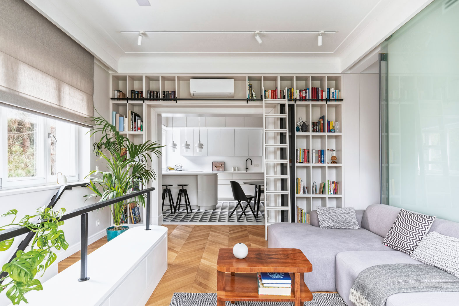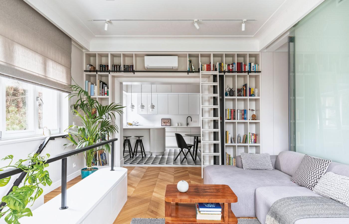 Jednak po wojnie, w okresie największego głodu mieszkaniowego, wnętrze willi mocno się przeobraziło. Poddasze zostało zaadaptowane do celów mieszkalnych, na parterze ściana podzieliła salon i przestronny hol pomiędzy dwa oddzielne mieszkania. Obecni właściciele, kupując jedno z nich, stanęli przed wyzwaniem, jak zmienić niezbyt funkcjonalny układ pomieszczeń tak, by odpowiadał ich potrzebom.