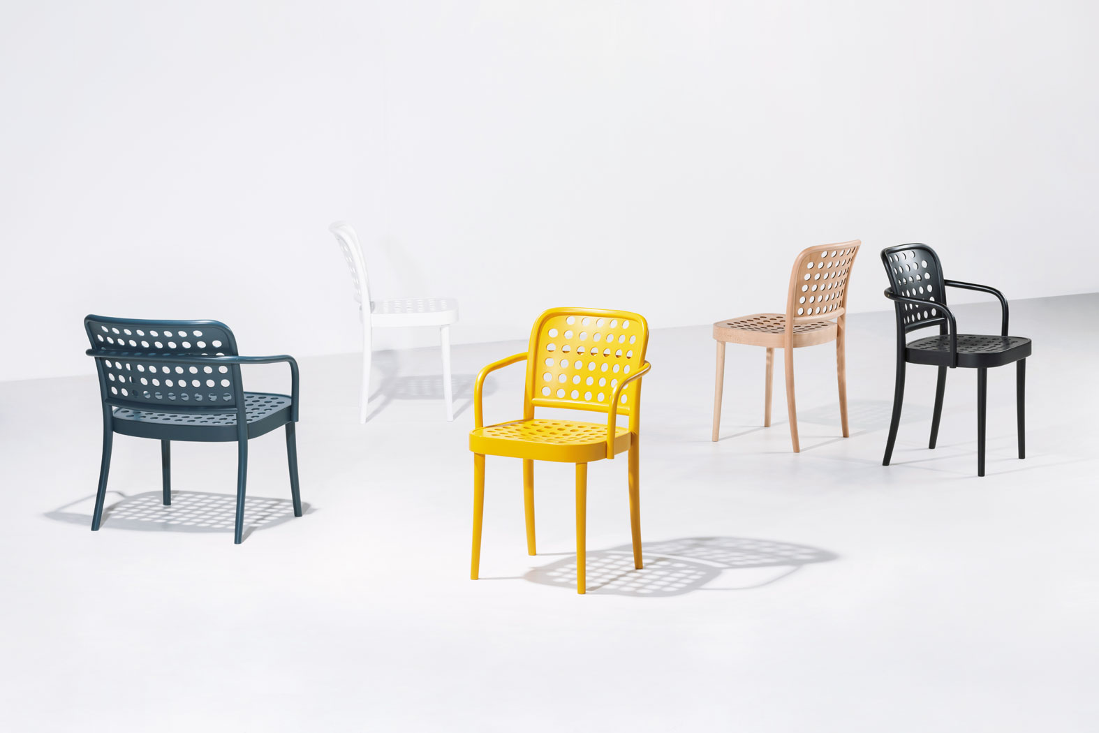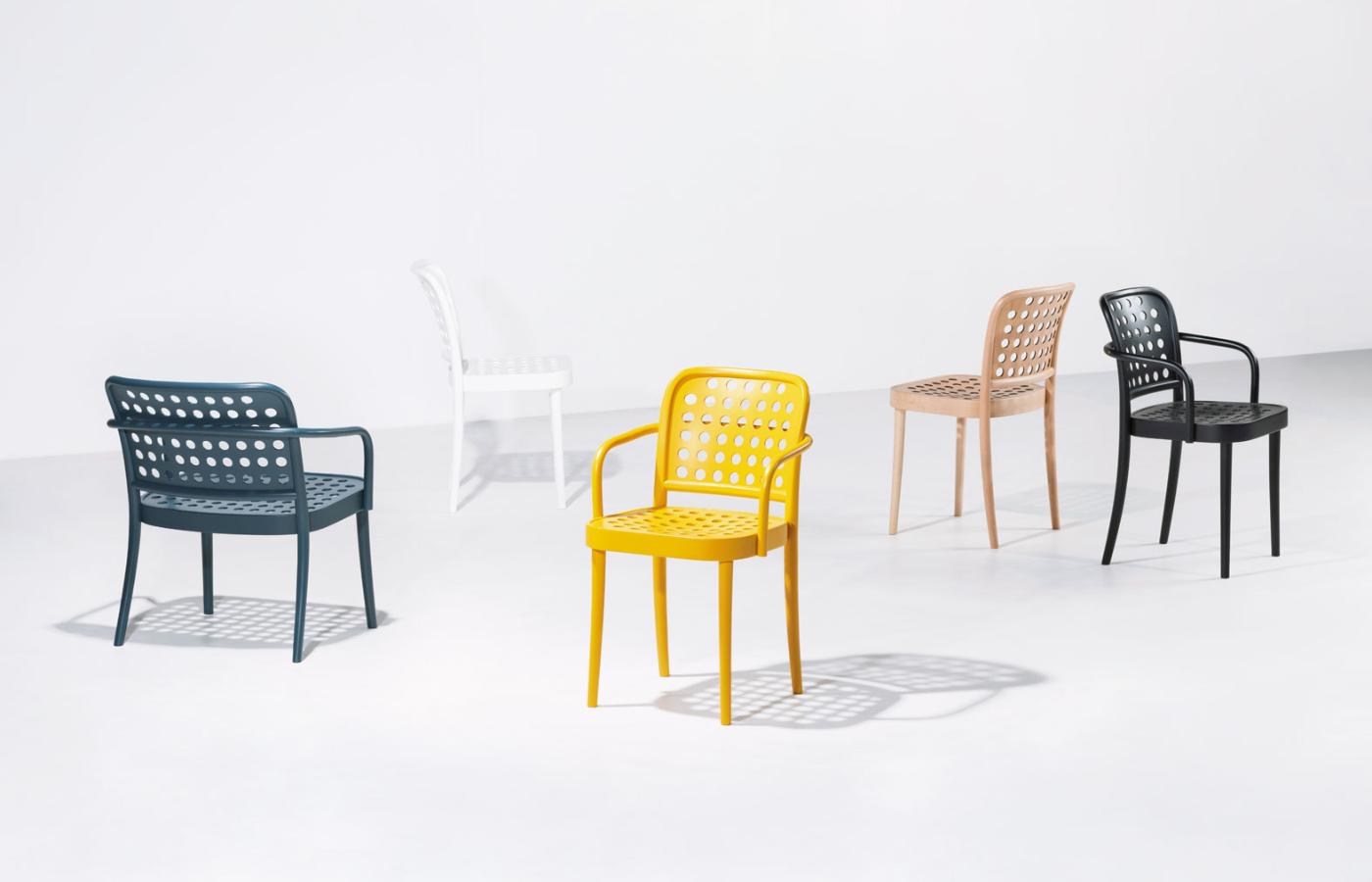 W 1929 r. architekt Josef Hoffmann, jeden z twórców wiedeńskiej secesji i pionier modernizmu, zaprojektował krzesło do kawiarni na zewnątrz. Miało perforowane oparcie (12 dużych otworów), czasem rattanowy wyplot, występowało z podłokietnikami lub bez. Oznaczone symbolem A 811 było produkowane w firmie Thonet-Mundus przez wiele lat, aż postanowiono zaktualizować model i nadać mu numer 811. Właśnie ono, jego proporcje stały się inspiracją dla szwedzkiej pracowni Claesson Koivisto Rune, kiedy tworzyli limitowaną serię do pewnej restauracji. Ale „wariacja na temat klasyka” tak bardzo się spodobała firmie TON, że powstała rozszerzona, masowo produkowana kolekcja 822. www.ton.eu