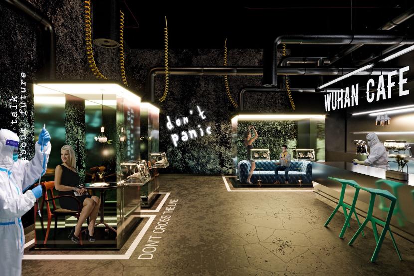 Zwizualizujmy sobie kawiarnię o wymownej nazwie „Cafe Wuhan”. To całkiem nowa koncepcja lokalu, potrzebnego w czasach epidemii, gdy problematyczne staje się znalezienie bezpiecznego miejsca. W „Cafe Wuhan” można mieć pewność, że zrobiono wszystko, by wirus nie miał do gościa dostępu. Siedzimy sobie pojedynczo w zamkniętej, sterylnej kabinie, obsługiwani przez specjalistyczny, wyszkolony personel, obowiązkowo ubrany w stroje ochronne. Bar przypomina laboratorium chemiczne. W takich warunkach można zdjąć na chwilę maseczkę i jednocześnie cieszyć się, że mogliśmy wymknąć się z domu. Nawet w czasach szalejącej kwarantanny potrzebujemy czasem po prostu „wyjść na miasto”. Tak robiliśmy przecież całe lata. Może nawet podejmiemy kontrolowane ryzyko i spotkamy się z kimś? Jeśli nawet my się nie odważymy, odważy się ktoś inny – randki z „nutką dreszczyku” na pewno przyciągną niejedną osobę szukającą mocnych wrażeń.