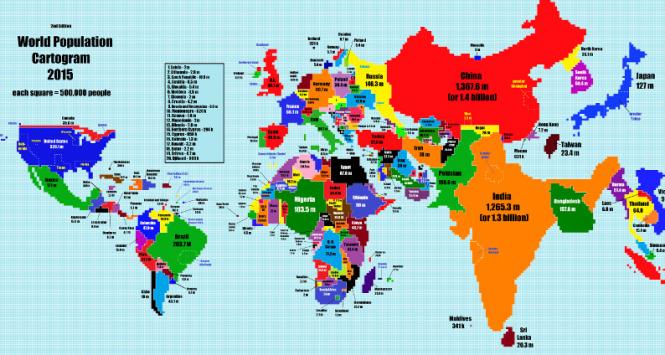 Tak wyglądałby świat, gdyby o wielkości państw decydowała liczba mieszkańców