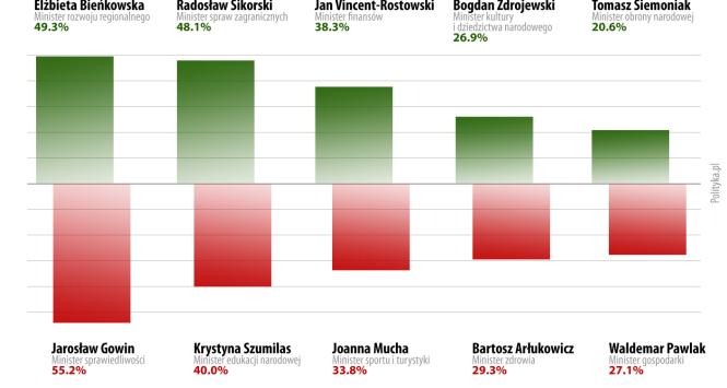 Wyniki rankingu najlepszych i najgorszych ministrów