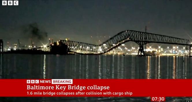 W most Key Bridge uderzył kontenerowiec. Do wody wpadli ludzie i samochody. Trwa akcja ratunkowa.