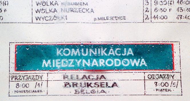 Orientacyjny kierunek, w którym znajduje się lepsza przyszłość, potrafi w Siemiatyczach wskazać palcem każde dziecko, a jej obiecujący zapach czuć już na miejscowym dworcu, gdy w każdy piątek o siódmej rano otwierają się drzwi klimatyzowanego autobusu Volvo, jeżdżącego na linii Siemiatycze–Bruksela.